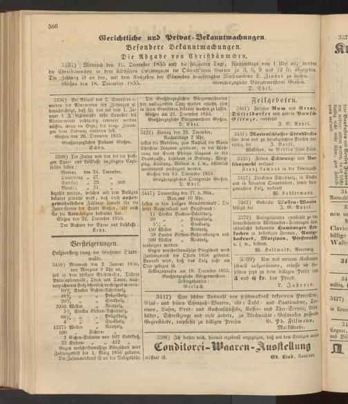 Großherzogliche Bürgermeisterei Gießen. _______________D. Ebel.___________ 3422) Freitag den 28. December,