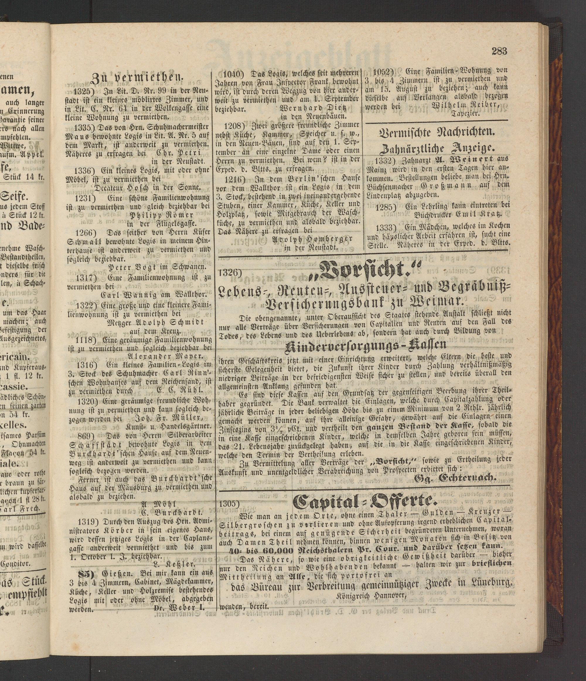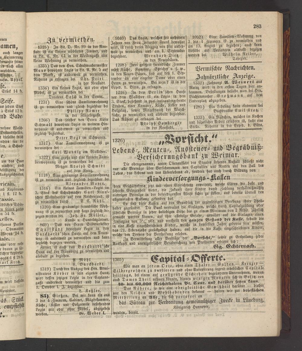 Lebens-, Renten-, Aussteuer- und Begräbuiß- Versicheruugsbank zu Weimar.