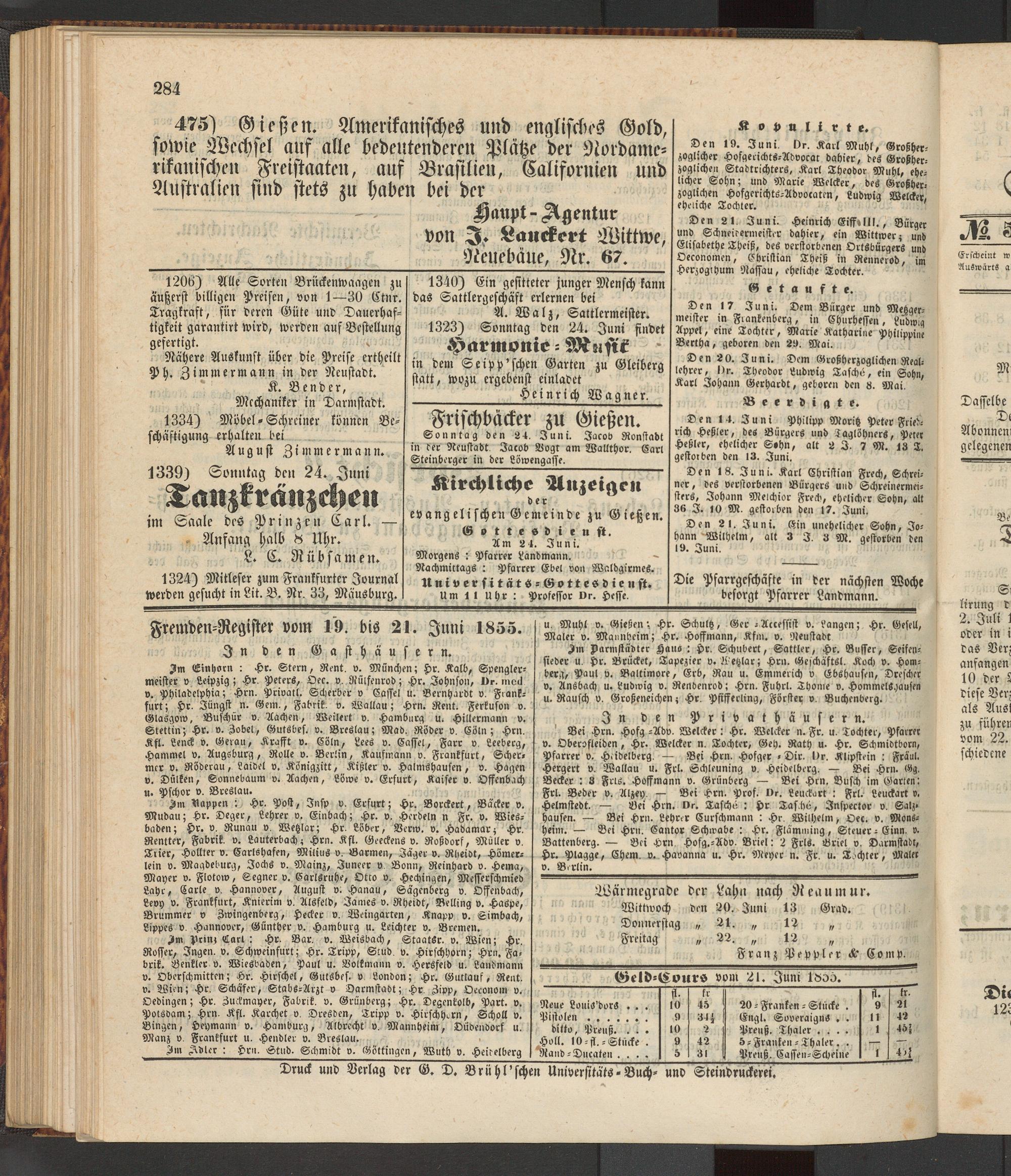Fremden-Register vom 19. bis 21. Juni 1855.