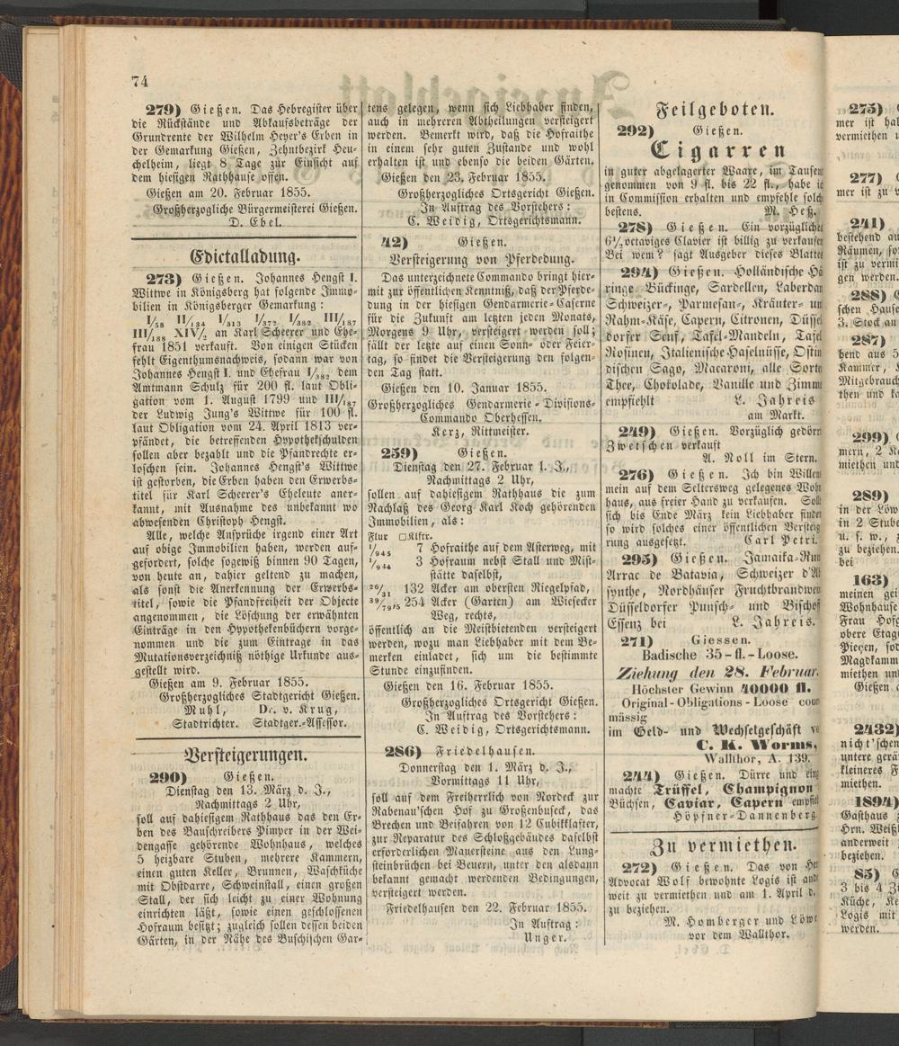 Gießen den 23. Februar 1855.