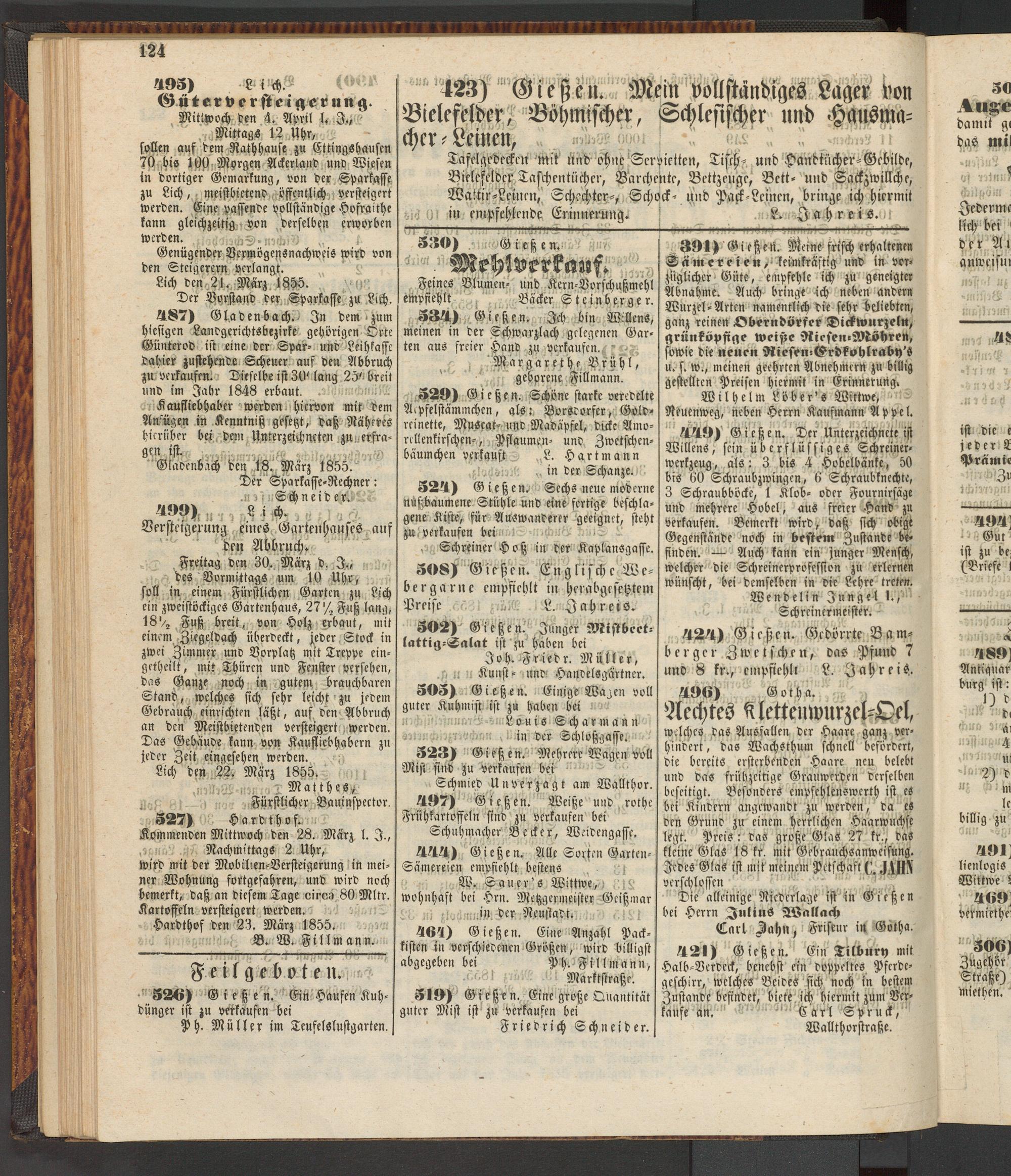 519) Gießen. Eine große Quantität guter Mist ist zu verkaufen bei