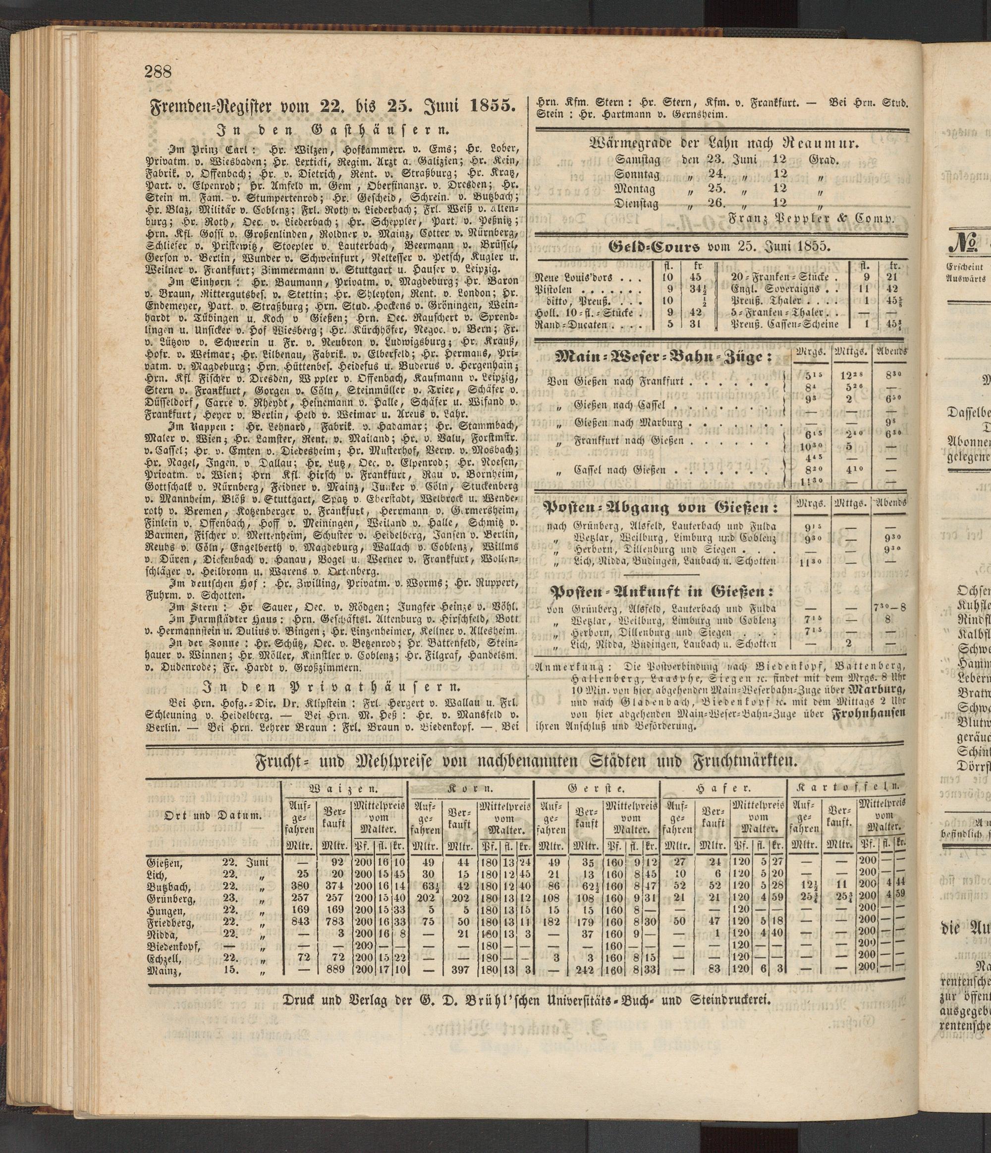 Fremden-Register vom 22. bis 25. Juni 1855.