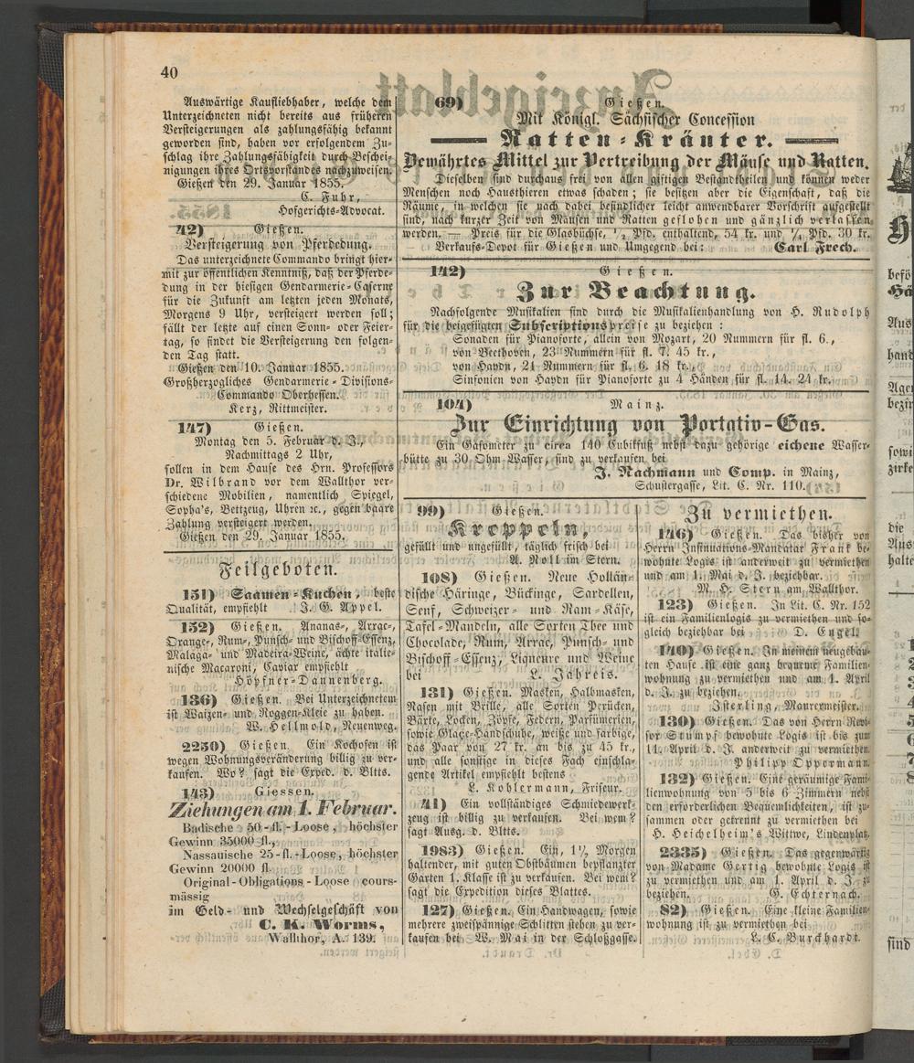 Gießen den 29. Januar 1855.