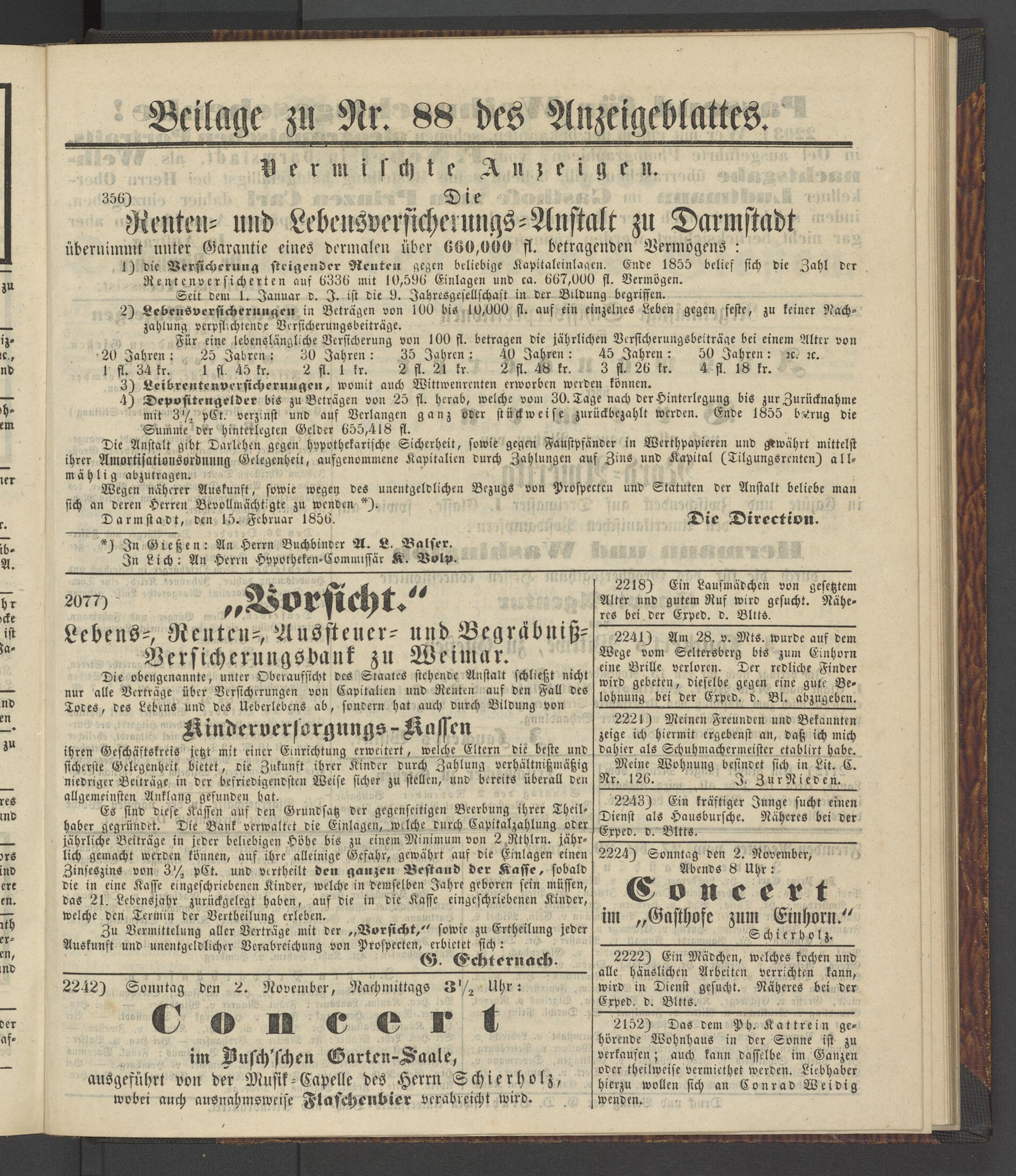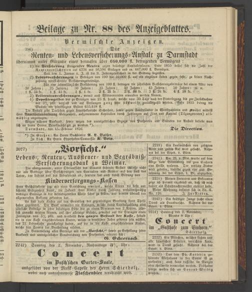 Darmstadt, den 15. Februar 1856. Die Direktion