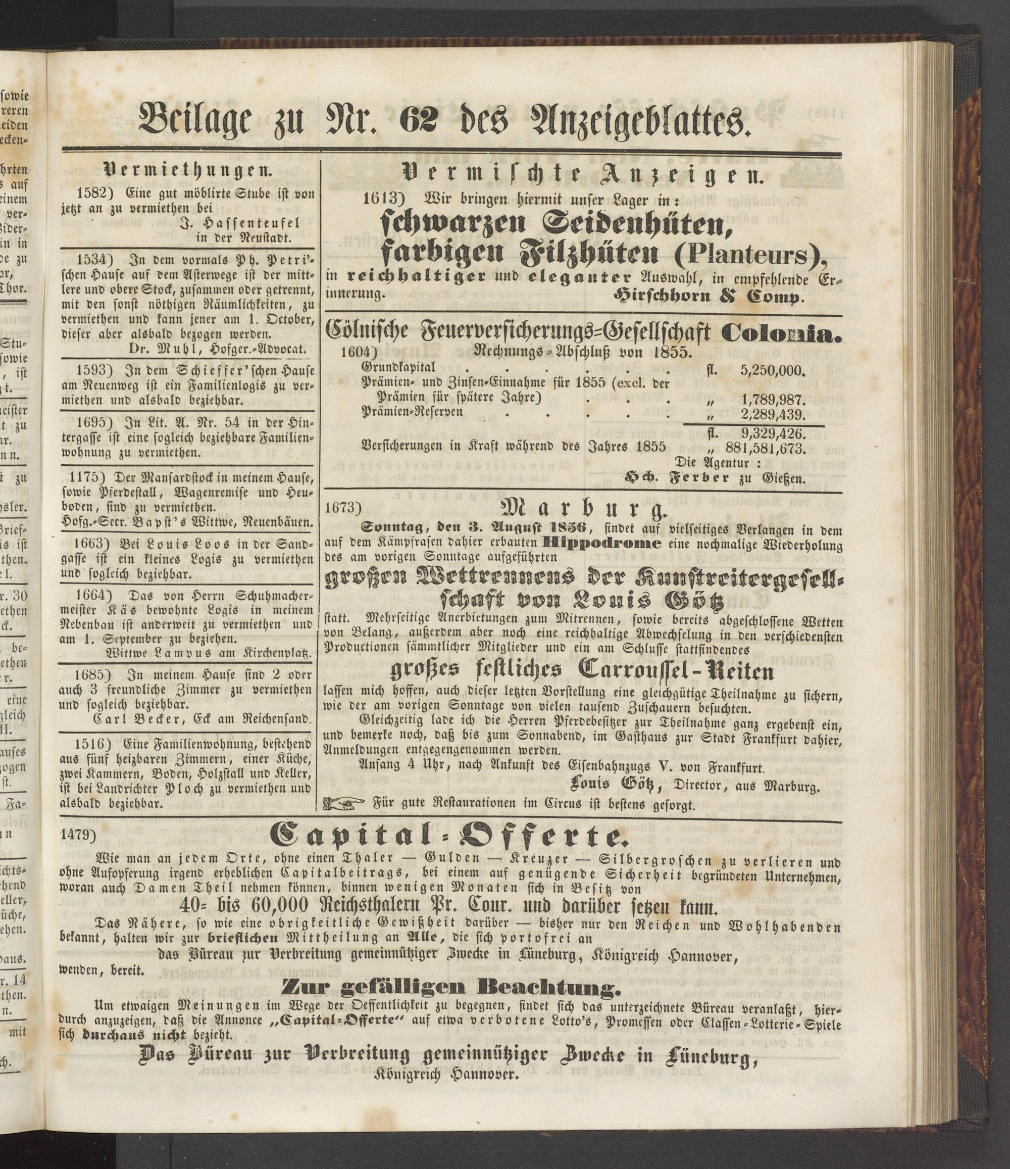 Um etwaigen Meinungen im Wege der Ocffentlichkeit zu begegnen, findet sich das unterzeichnete Bürcau veranlaßt, hier- durch anzuzeigen, daß die Annonce „Capital-Offerte" auf etwa verbotene Lotto's, Promessen oder Classen-Lotterie - Spiele sich durchaus nicht bezieht.