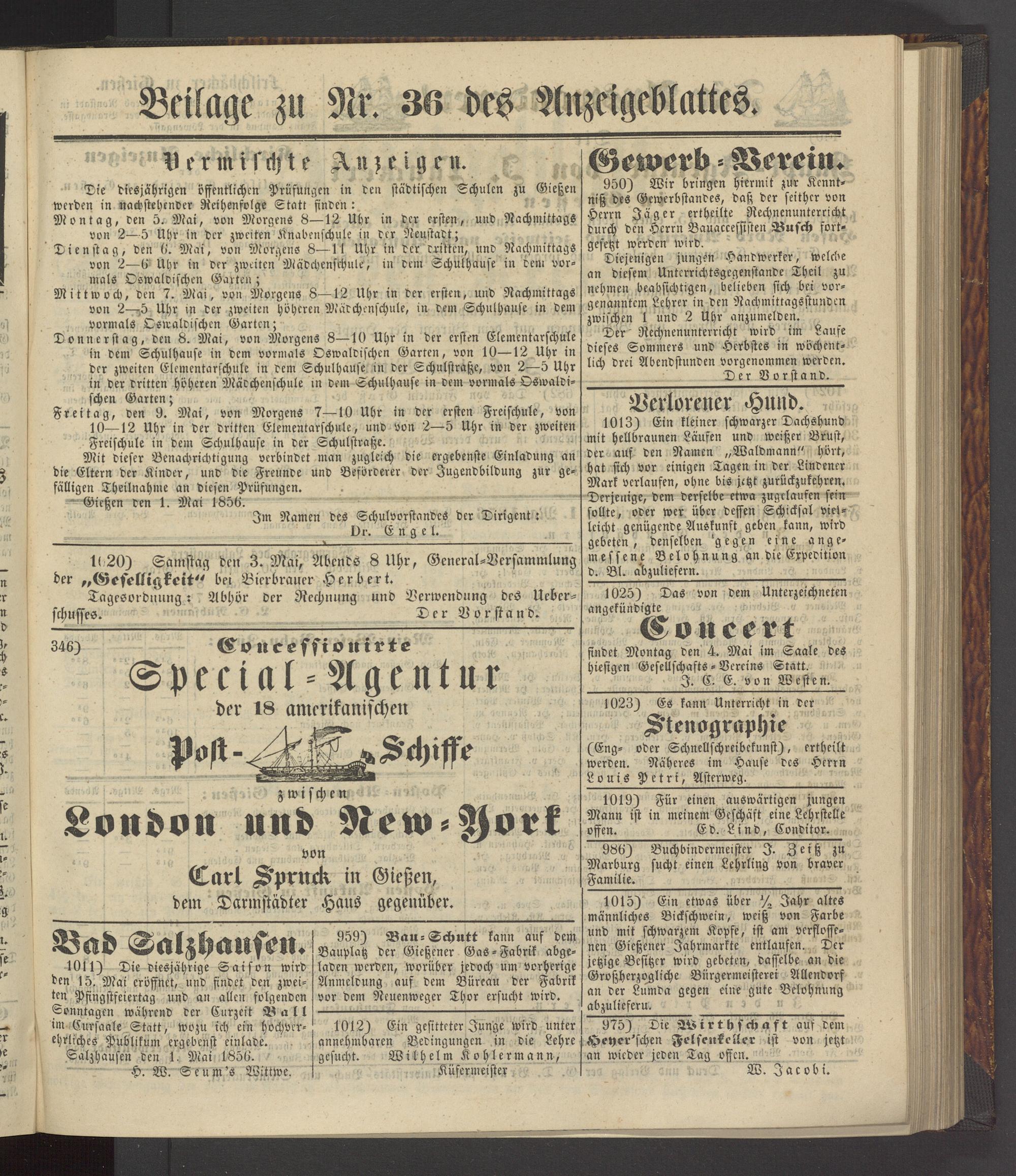 Gießen den 1. Mai 1856.