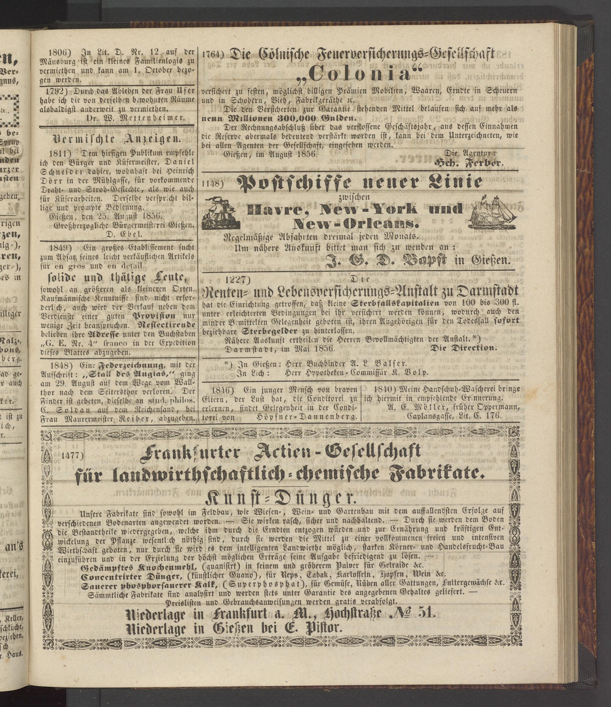 Gießen, im August 1856. Die Agentur: