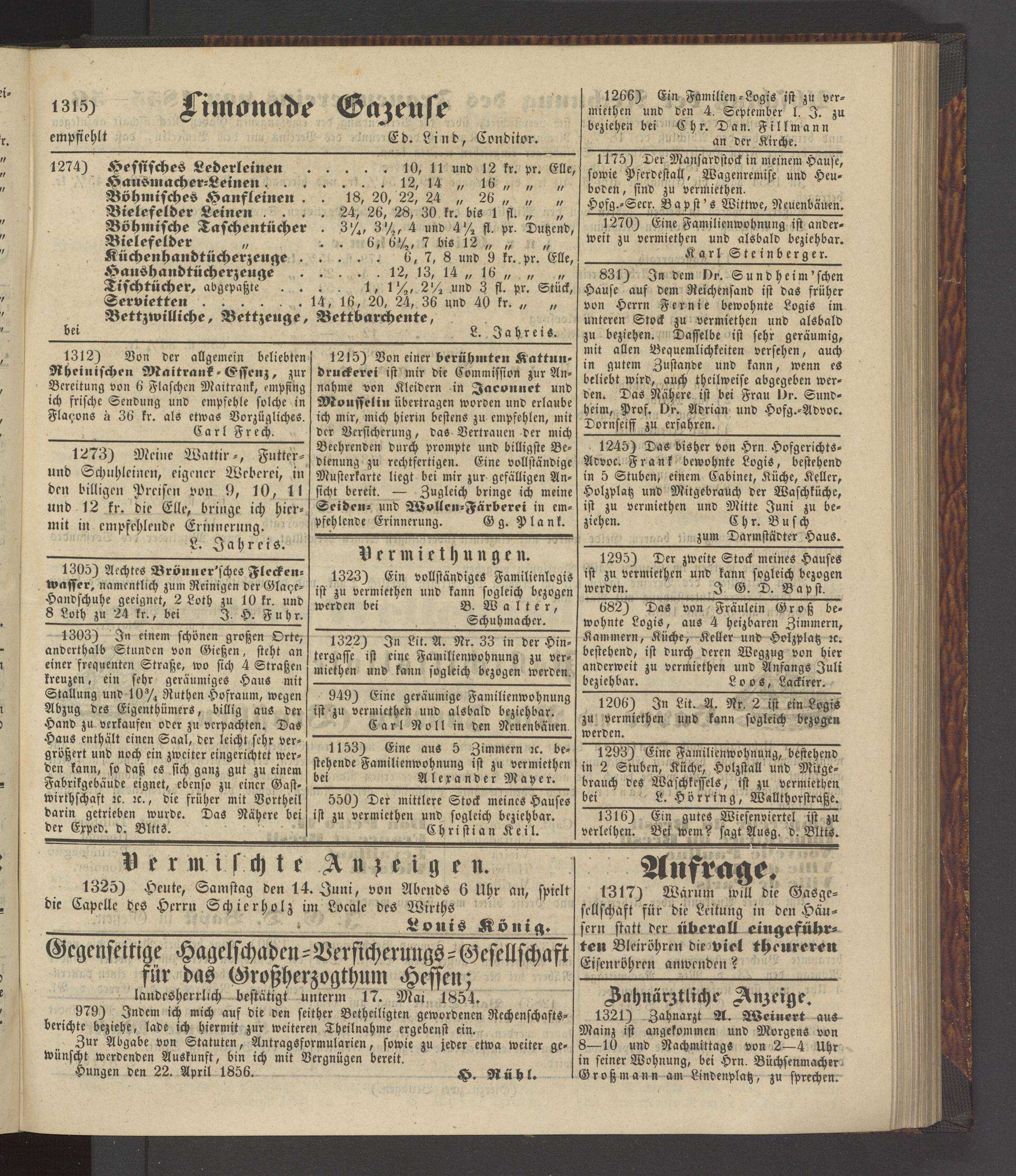 Hungen den 22. April 1856. H. Rühl.