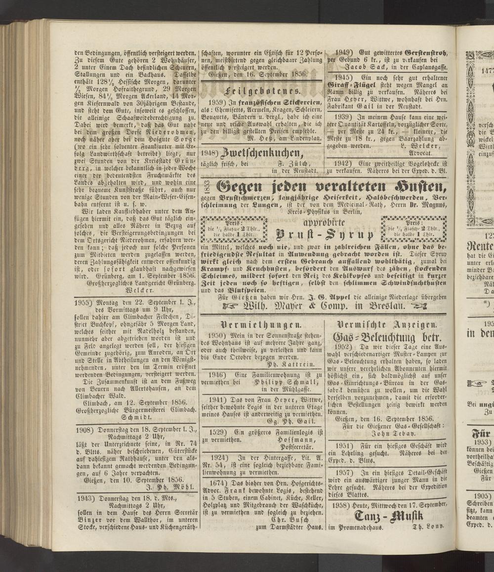 Gießen, den 10. September 1856. __________________I. PH. Möhl. 1943) Donnerstag den 18. d. Mts.,