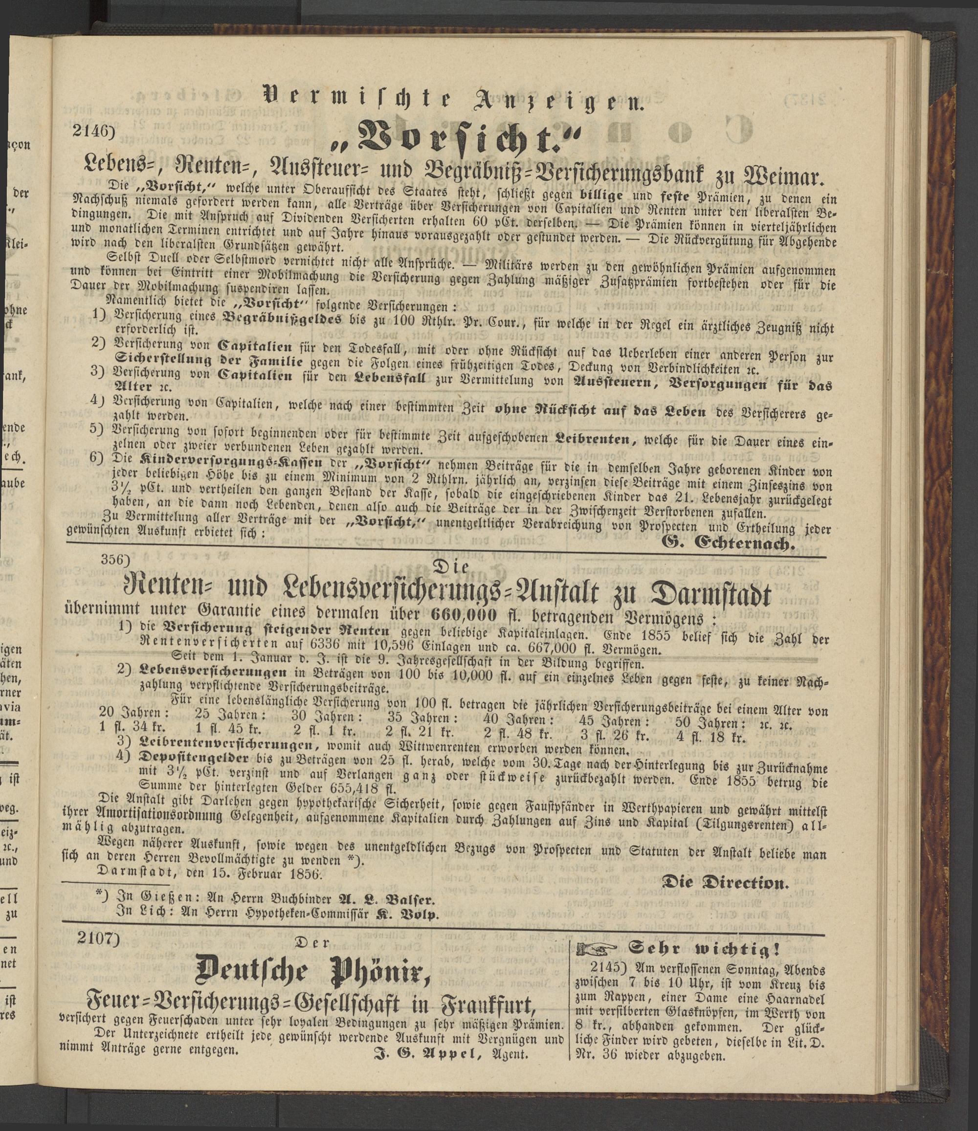 Nimmt Anträge gerne entgegen. ' I. G. Appel, Agent.