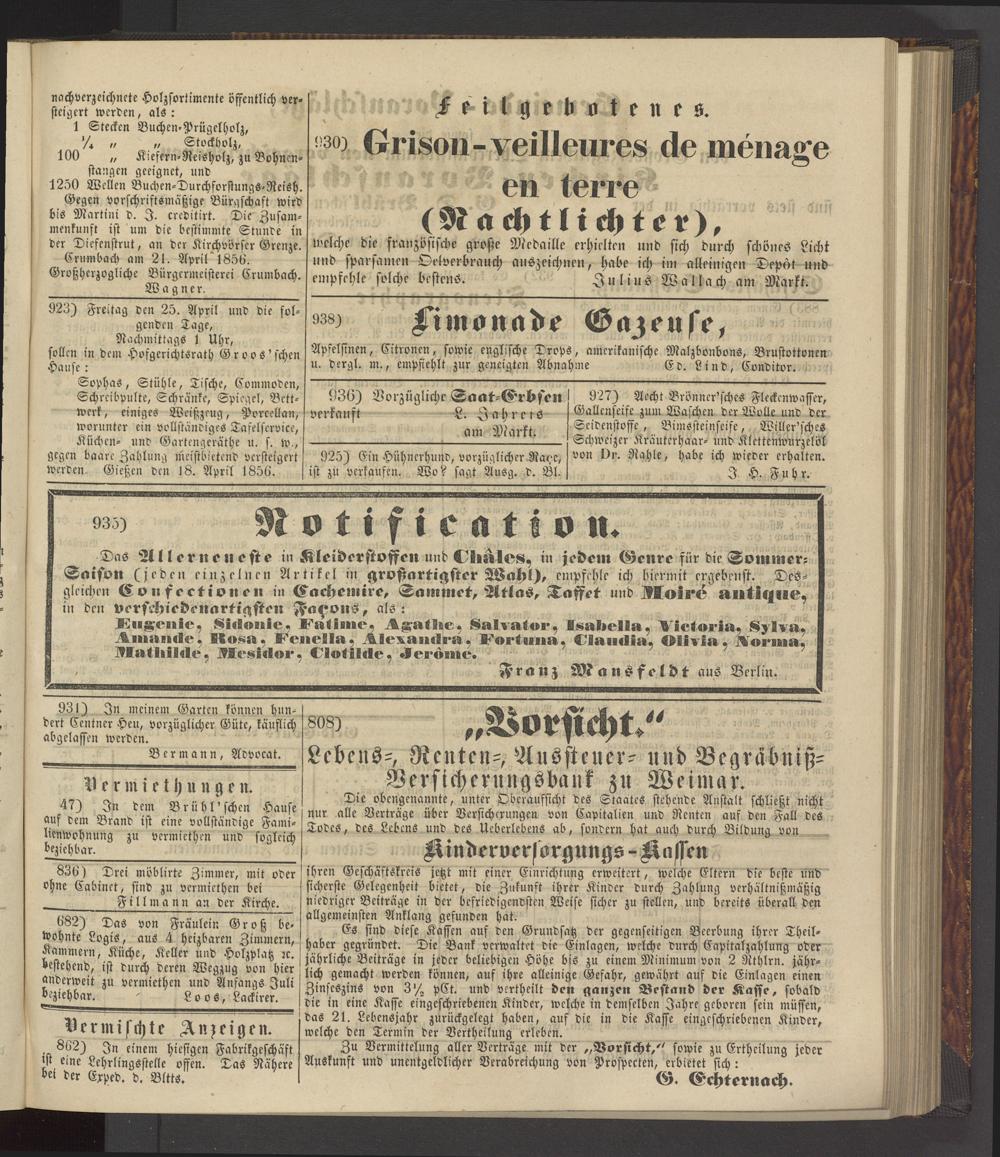 Vermischte Anzeigen.