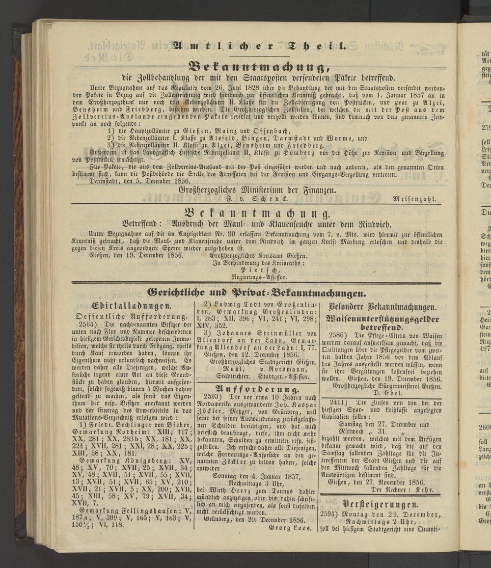 Gießen, den 19. December 1856. Großherzogliches Kreisamt Gießen.
