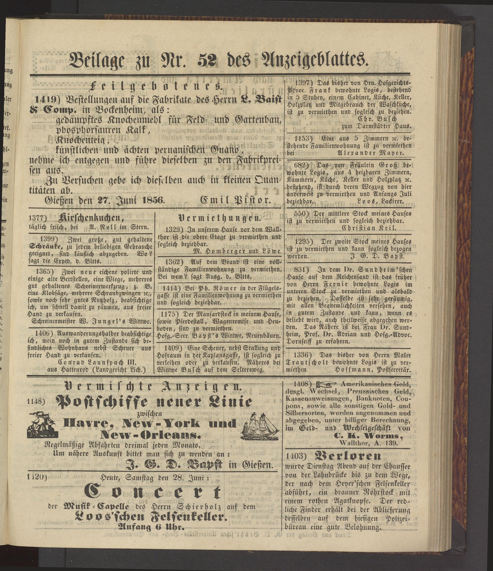 Gießen den 27 Juni 1856. Emil Pisto r.