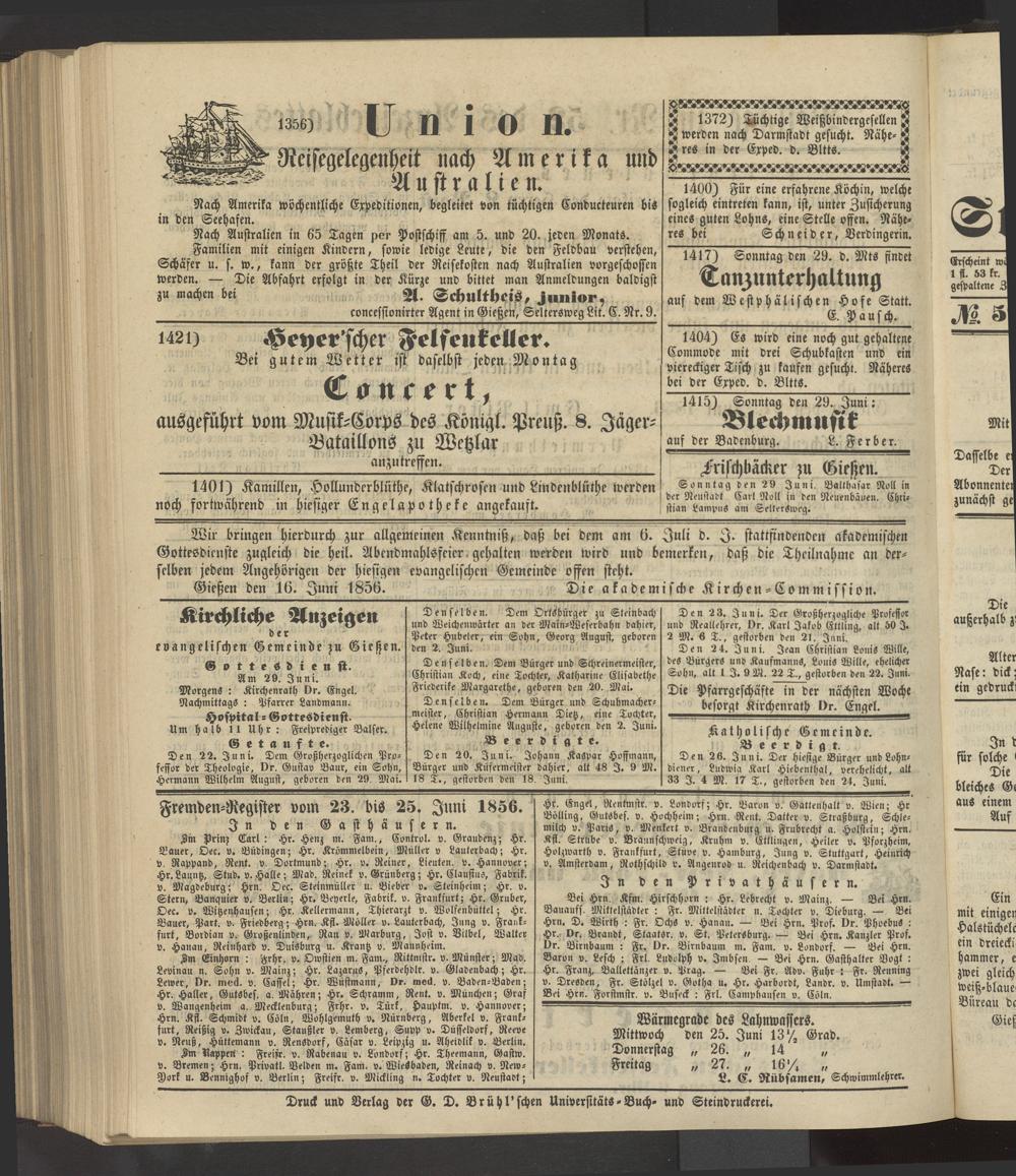 Fremden-Register vom 23. bis 25. Juni 1856.