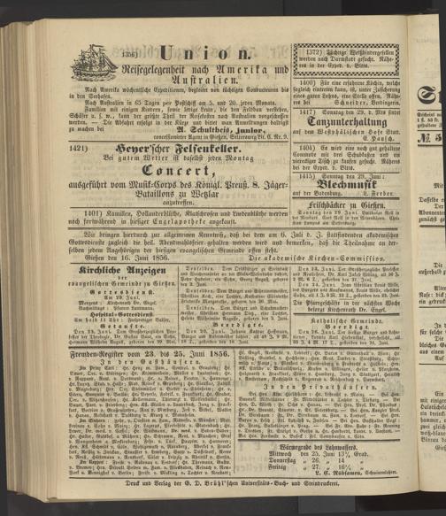 Gießen den 16. Juni 1856. Die akademische Kirchen-Commission.