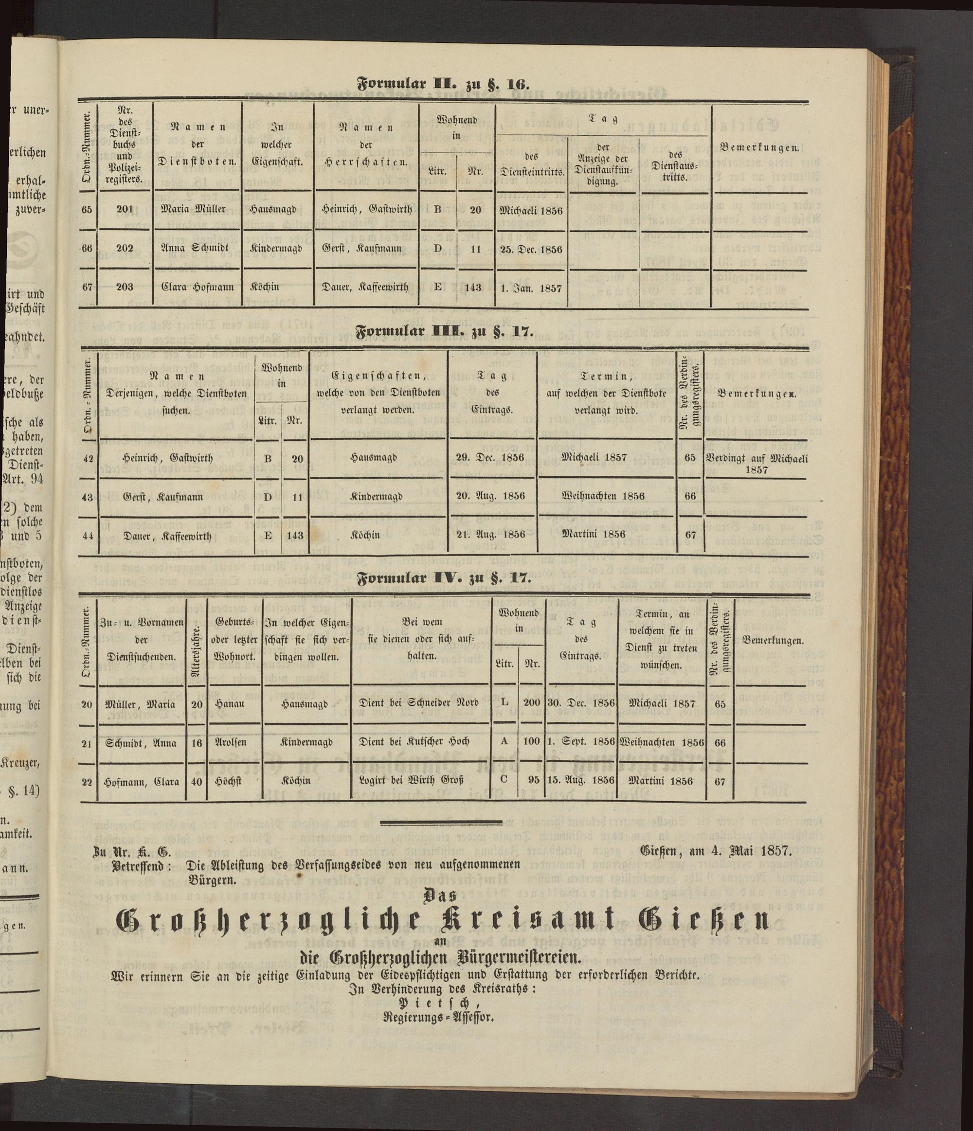 Zu Nr. K. G. Girstcn, am 4. Mai 1857.