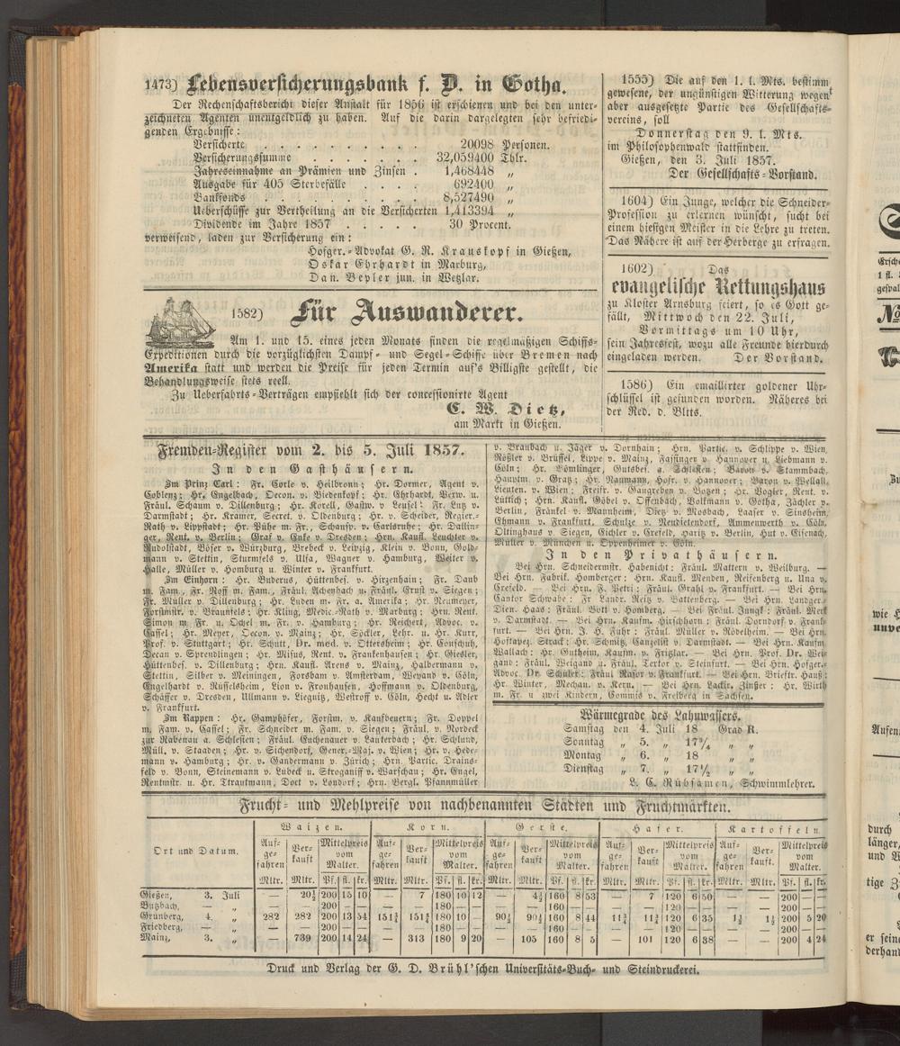 Fremden-Register vom 2. bis 5. Juli 1857.