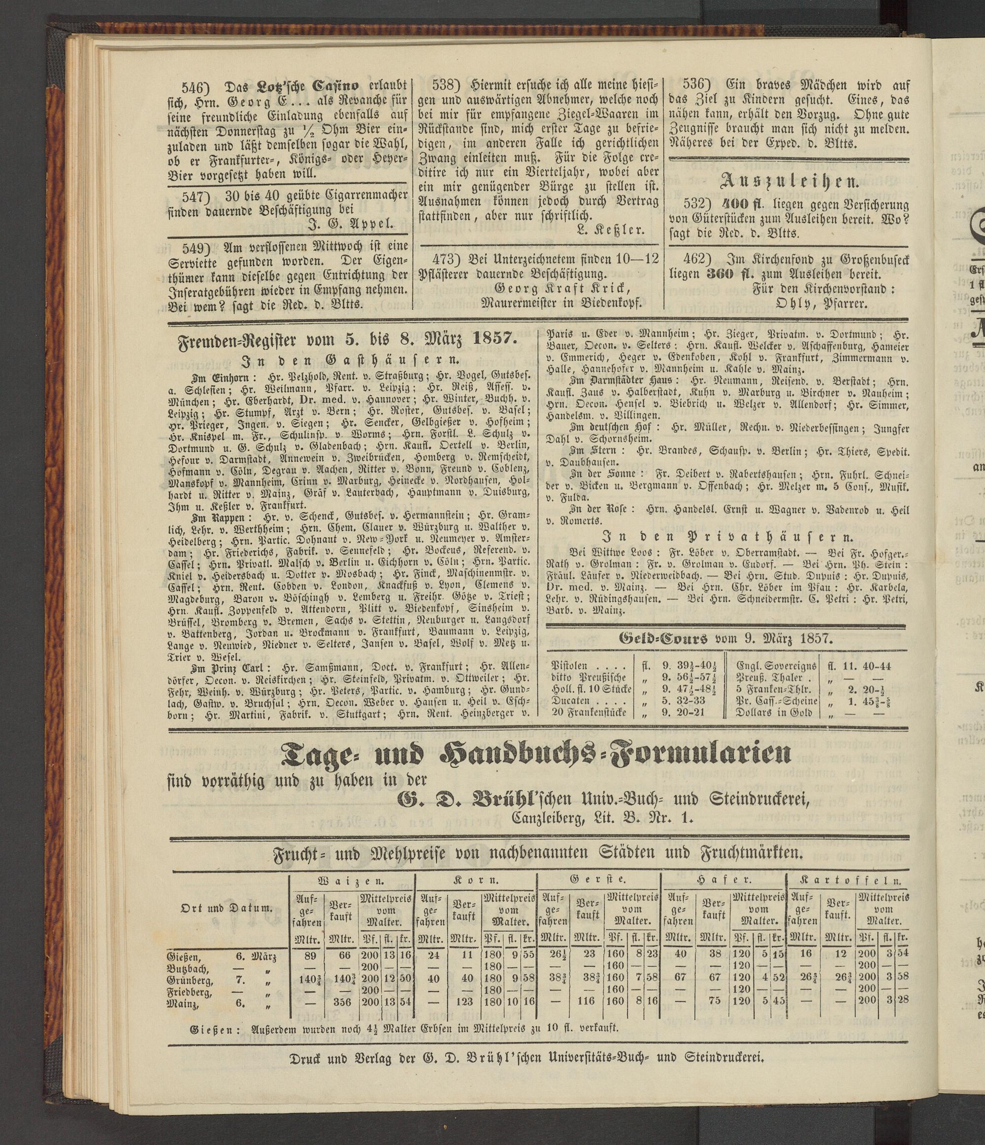 Geld-Cours vom 9. März 1857.