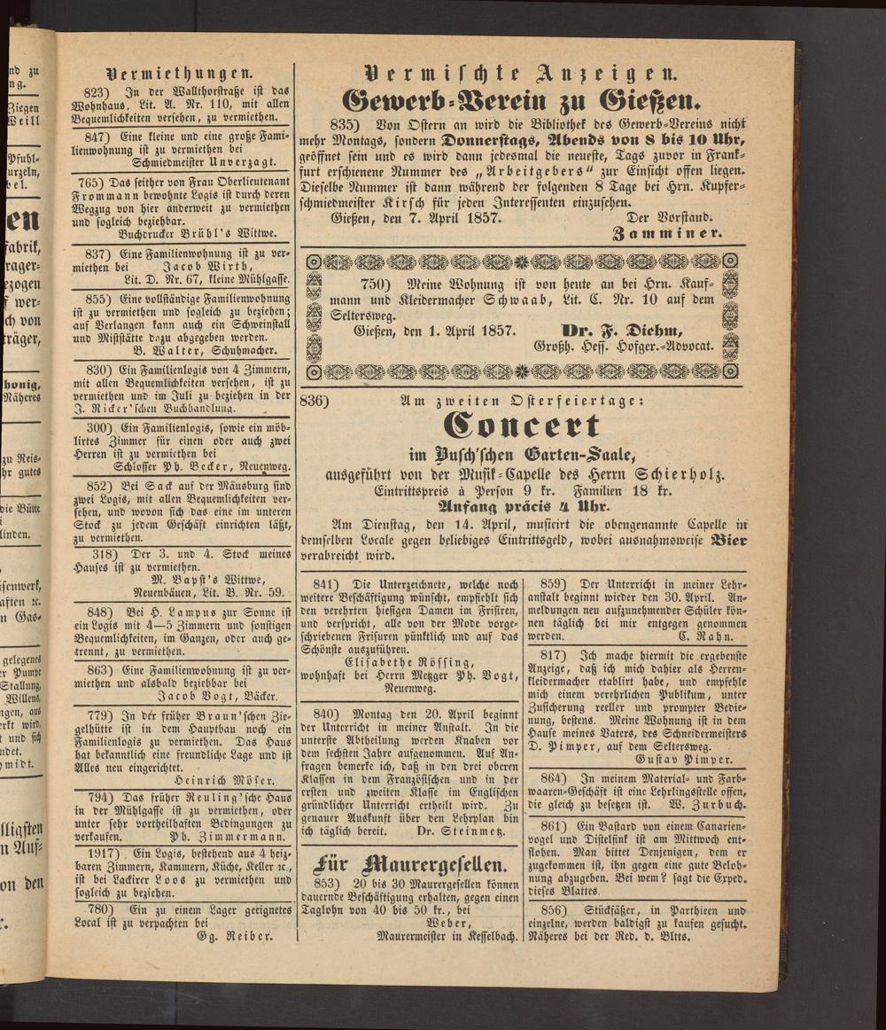 T Gießen, den 1. April 1857. Ur. F. Diehm, X D Großh. Hess. Hvsger.-Advocat. D