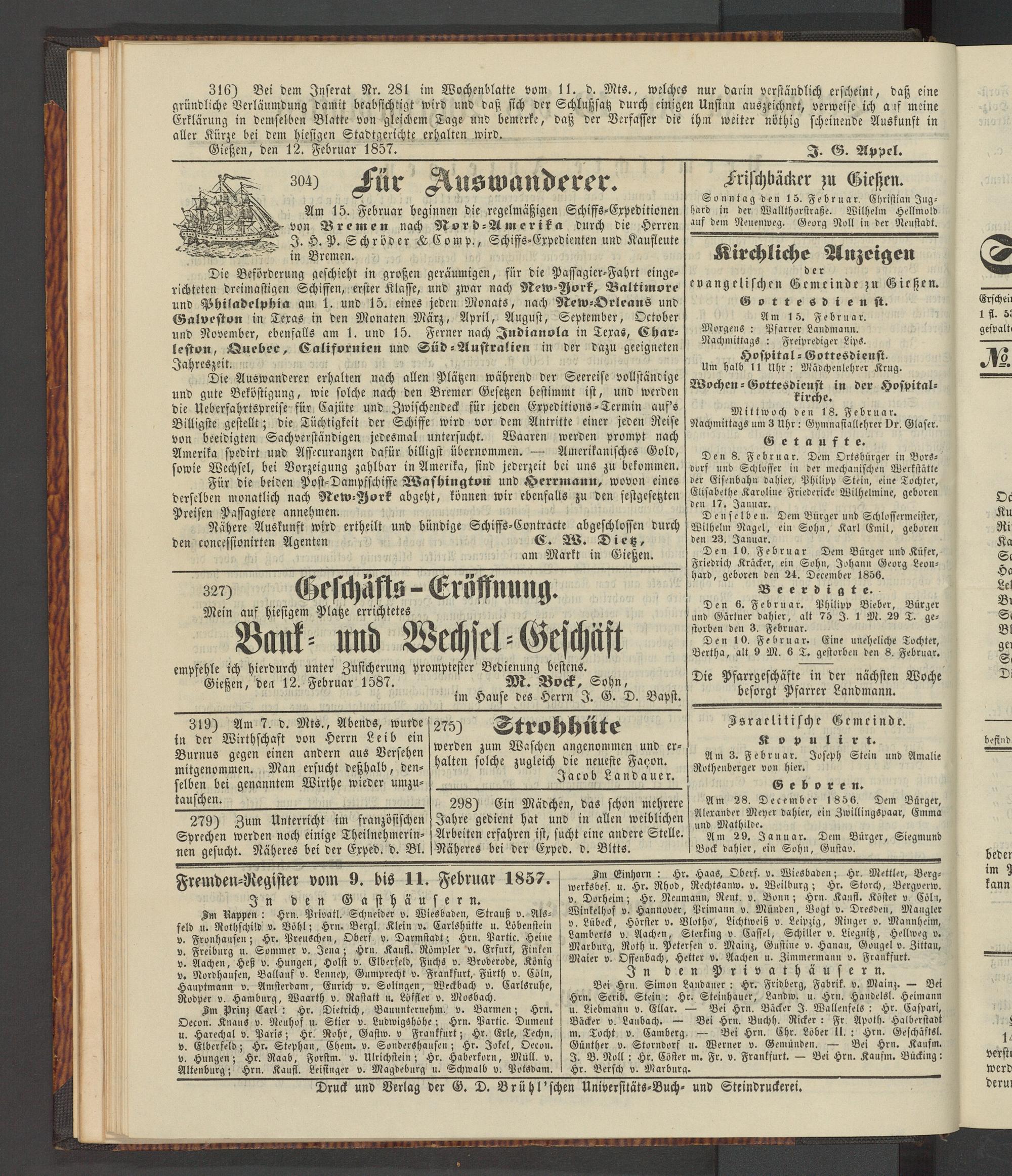 Gießen, den 12. Februar 1857. I. G. Appcl.