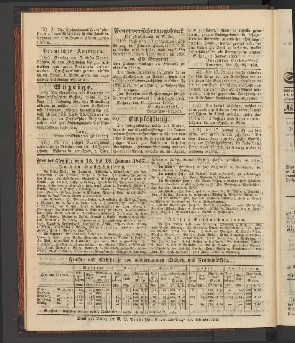Im deutschen Hof : Hr. Caspari, Bäck. v. Lanbach; Hr. Steinberger, Verw. v Butzbach; Hr. Peter, Privatm. v. Annerod.