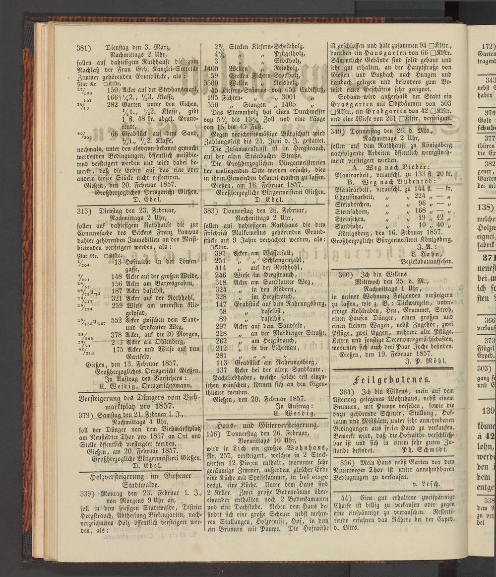 in ihren Gemeinden bekannt machen zu lassen. Gießen, am 16. Februar 1857.