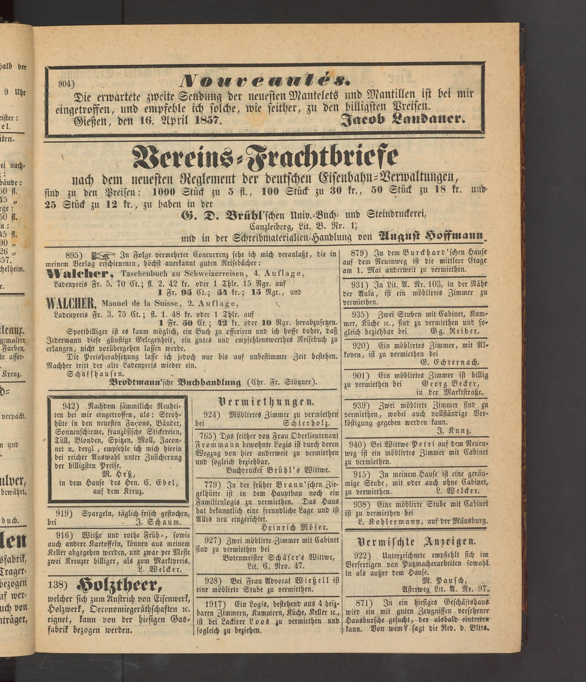Gießen, den 16. April 1857. Jsreob Landauer.
