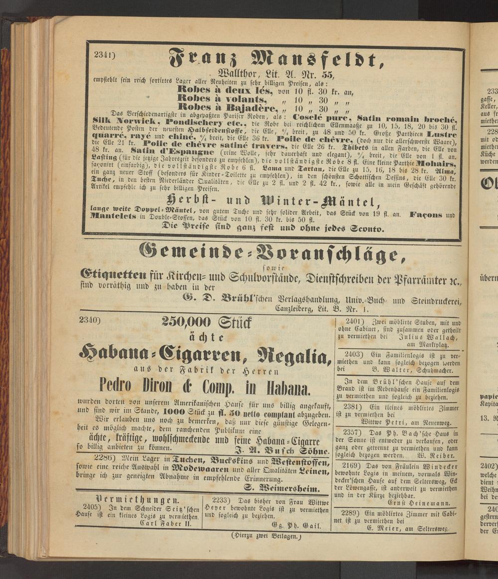 G. Brühl'scheir Verlagshandlung, Univ.-Buch- und Steindruckerei, _____________________ Canzleiberg, Lit. B. Nr. I.