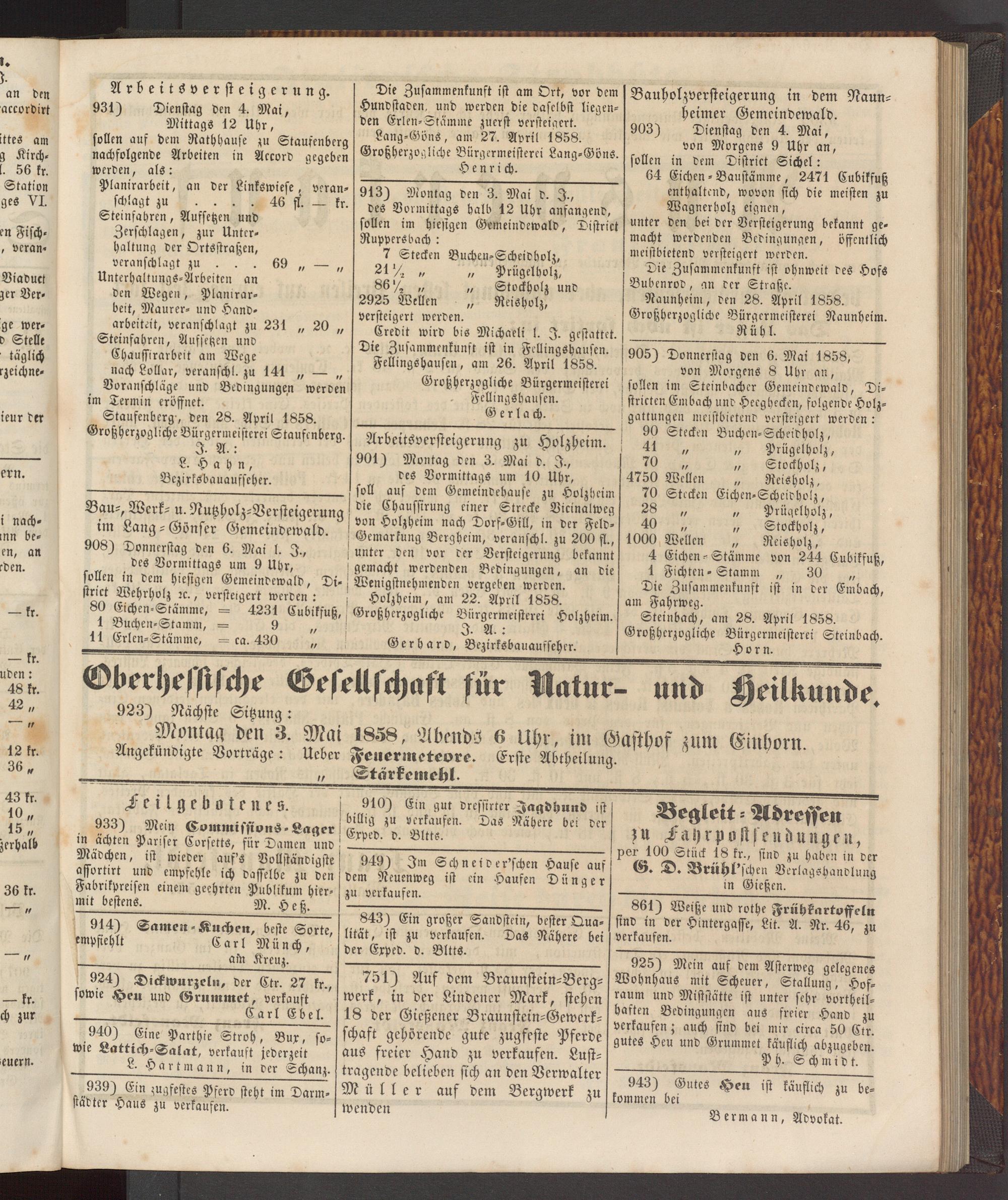 Holzheim, am 22. April 1858. Großherzogliche Bürgermeisterei Holzheim.