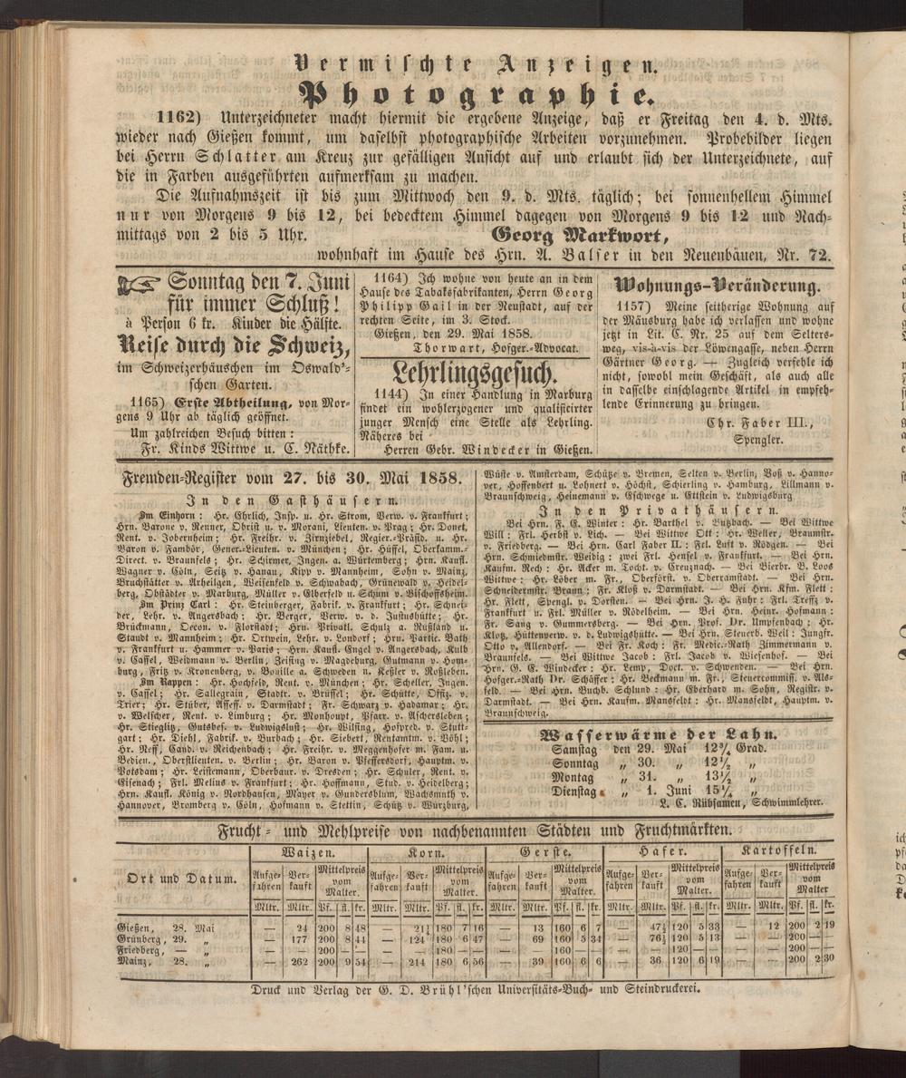 Gießen, den 29. Mai 1858.