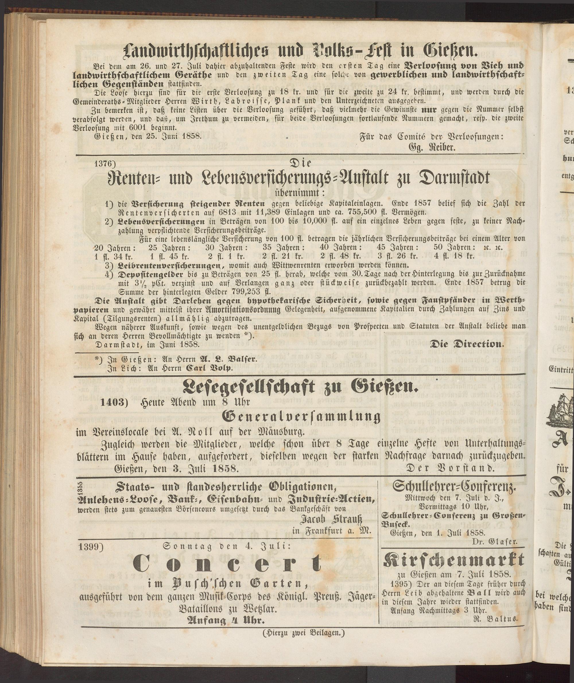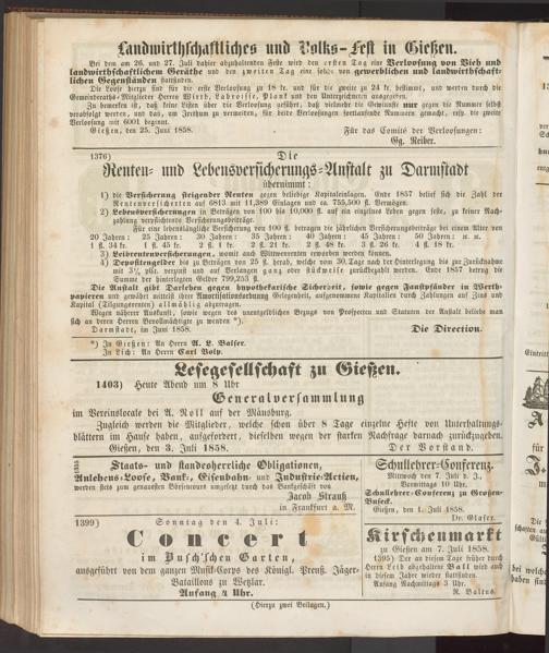Gießen, den 3. Juli 1858. Der Vorstand.