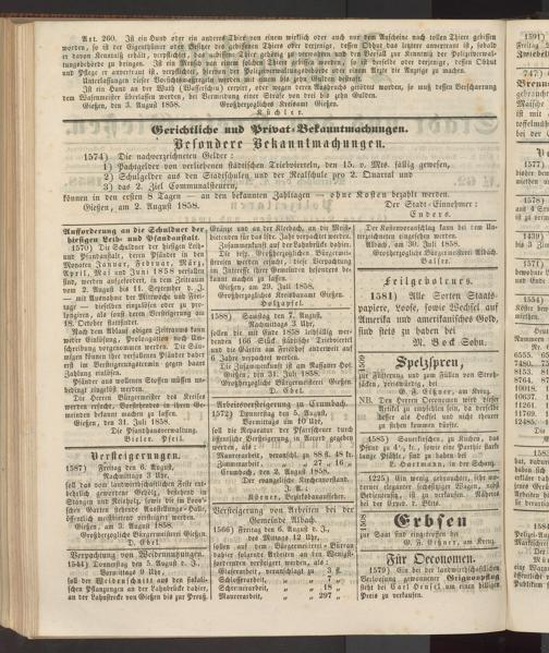 Gießen, den 3. August 1858. Großherzogliches Kreisamt Gießen.