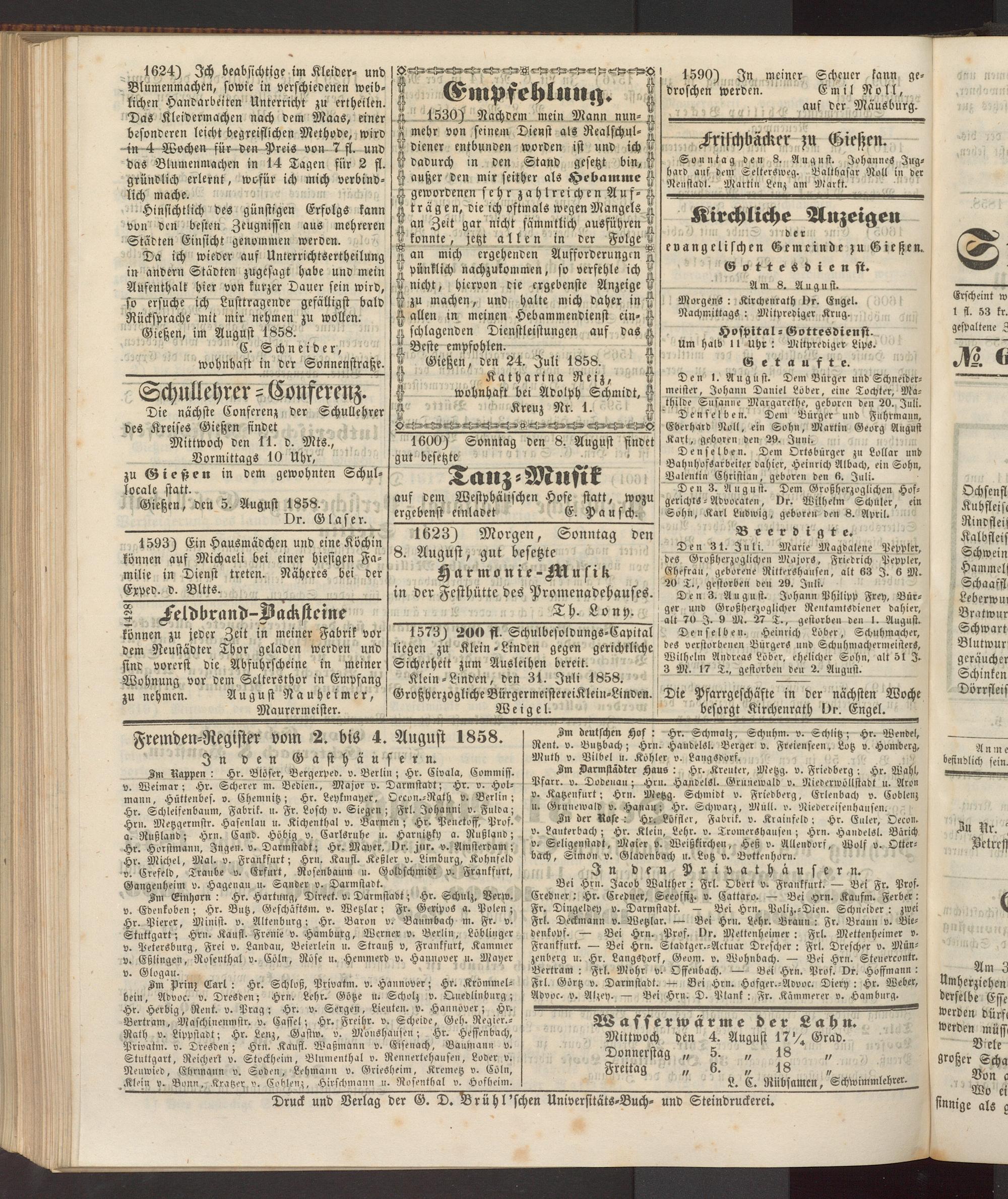 Gießen, den 5. August 1858.
