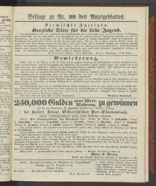 Beilage zu Nr. 99 des Anzeigeblattes.