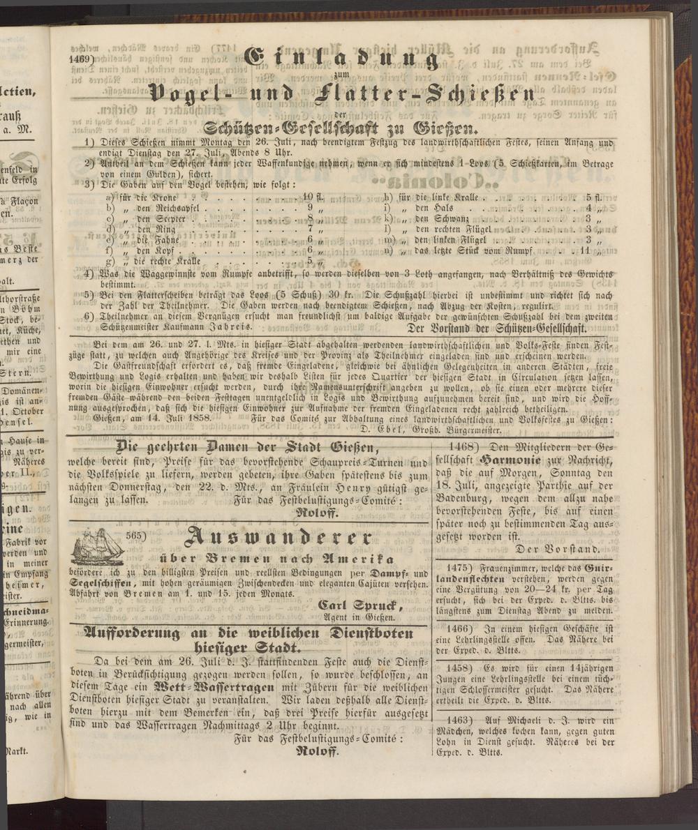 Gießen, am 14. Juli 1858. Für das Comitä zur Abhaltung eines landwirthschaftlichen und Volksfestes zu Gießen: D. Ebel, Grotzh. Bürgermei ft er.