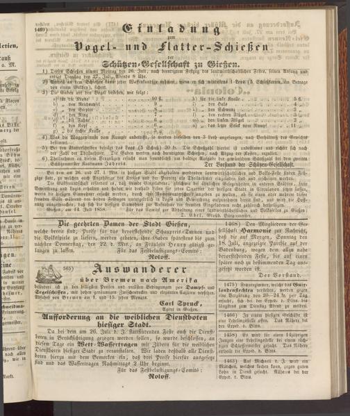 1) Dieses Schießen nimmt Montag den 26. Juli, nach beendigtem Festzug des landwirthschaftlichen Festes, seinen Anfang und endigt Dienstag den 27. Juli, Abends 8 Uhr.