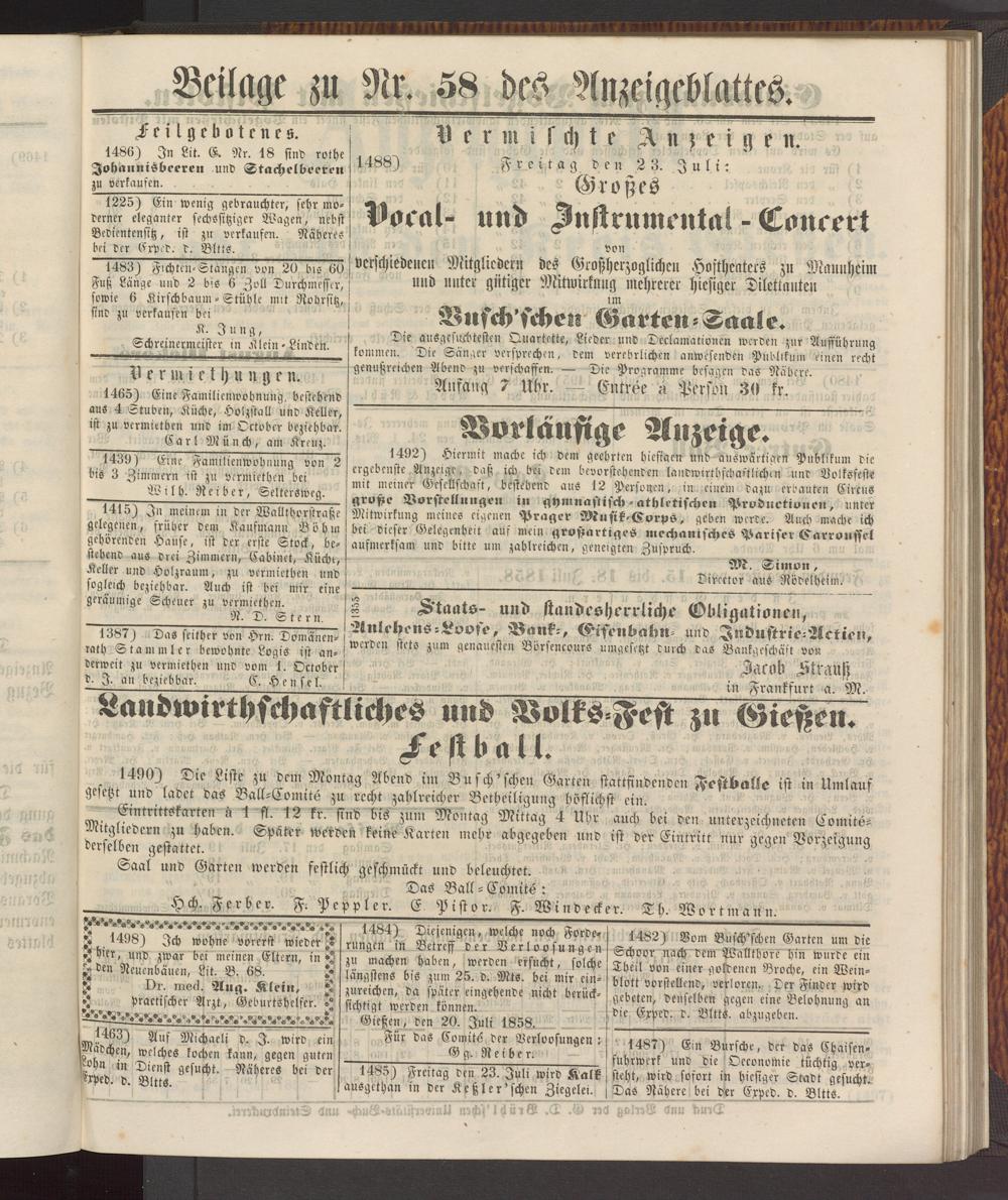 Gießen, den 20. Juli 1858,