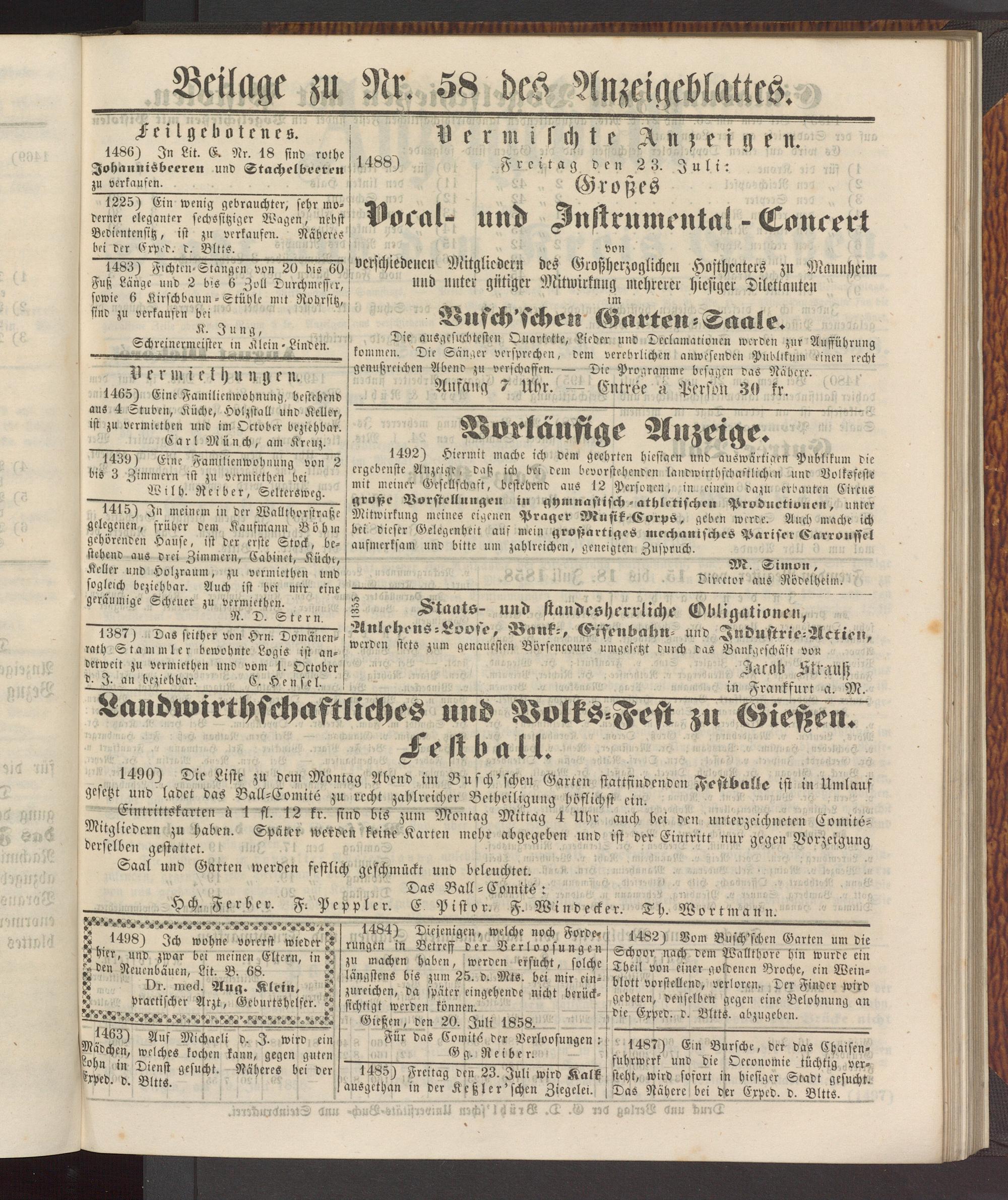 Beilage zu Nr. 58 des Anzeigeblattes.