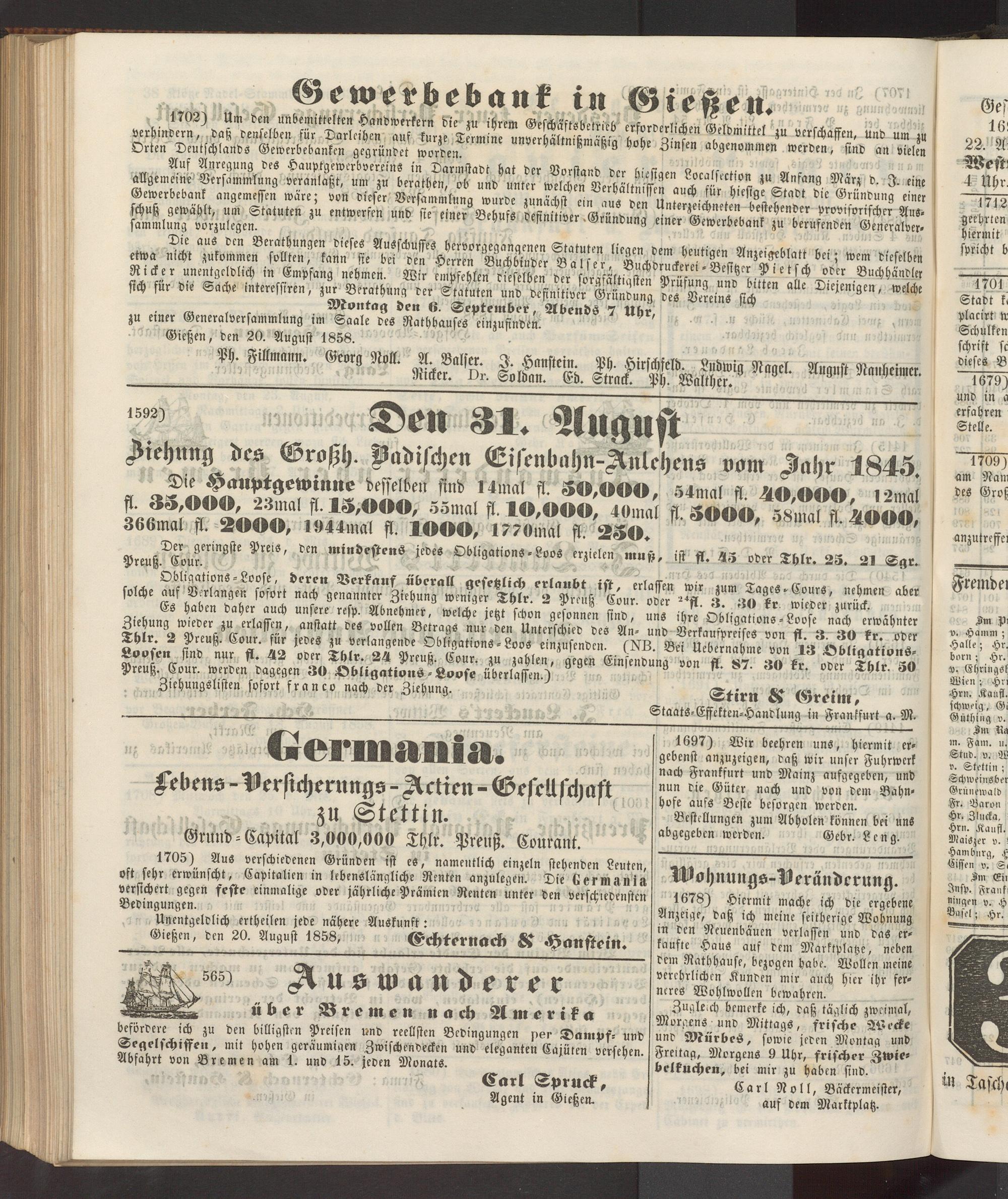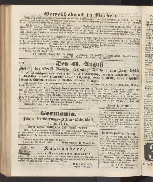 Gießen, den 20. August 1858, Echkernack St Haustein.