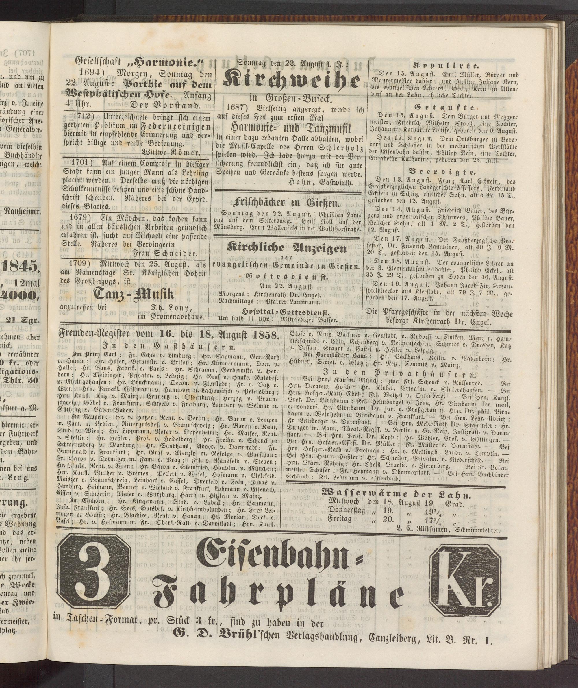 Fmnden-Negister vom 16. bis 18. August 1858 Ä n den Gasthäusern.