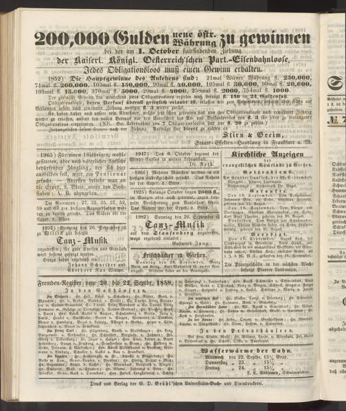 Fremden-Register vom 20. bis 22. Septbr. 1858.