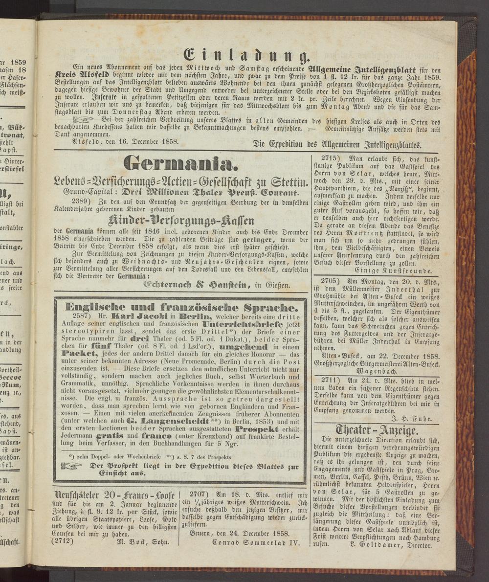 Alsfeld, den 16. Deeember 1858.DieExpedition des Allgemeinen Jntelligcnzblattes.