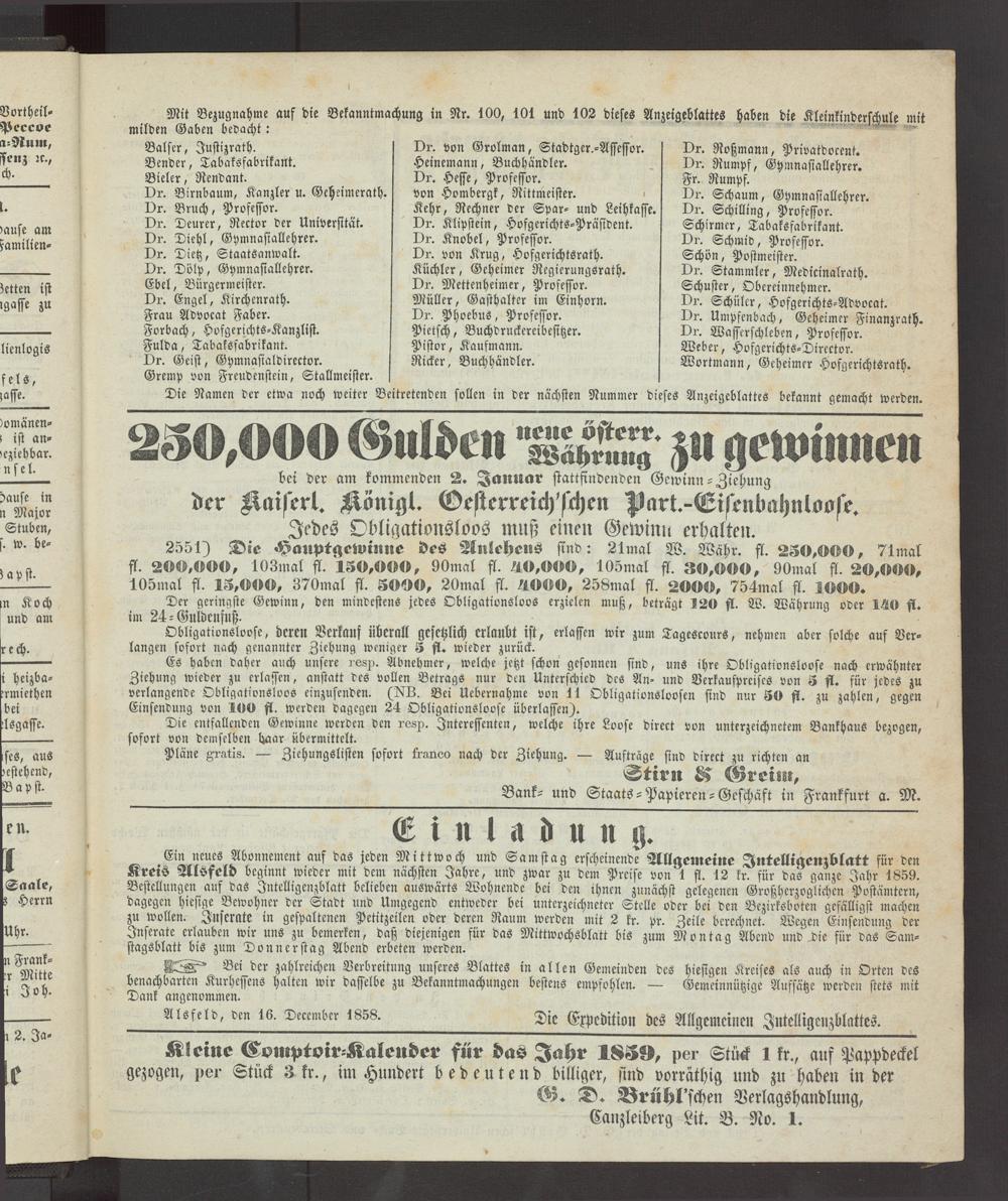 Alsfeld, den 16. Deccmbcr 1858.Die Expedition des Allgemeinen Jntelligenzblattes.