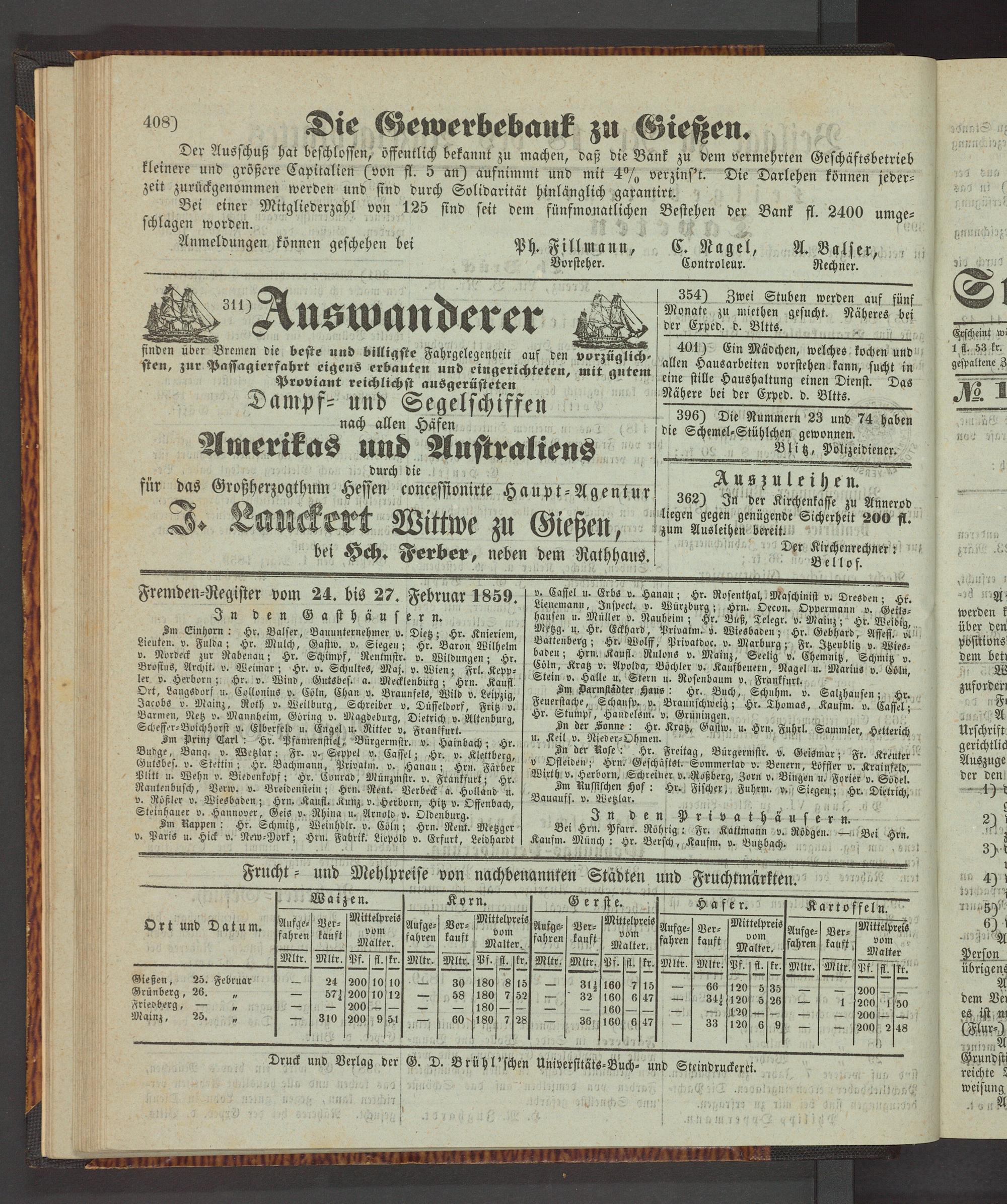 Fremden-Register vom 24. bis 27. Februar 1859.