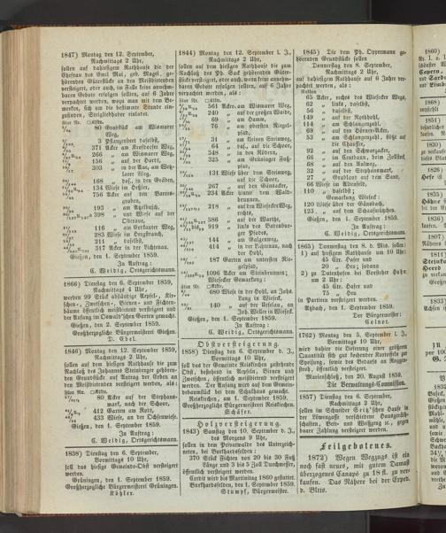 Gießen, den 2. September 1859. Großherzogliche Bürgermeisterei Gießen.