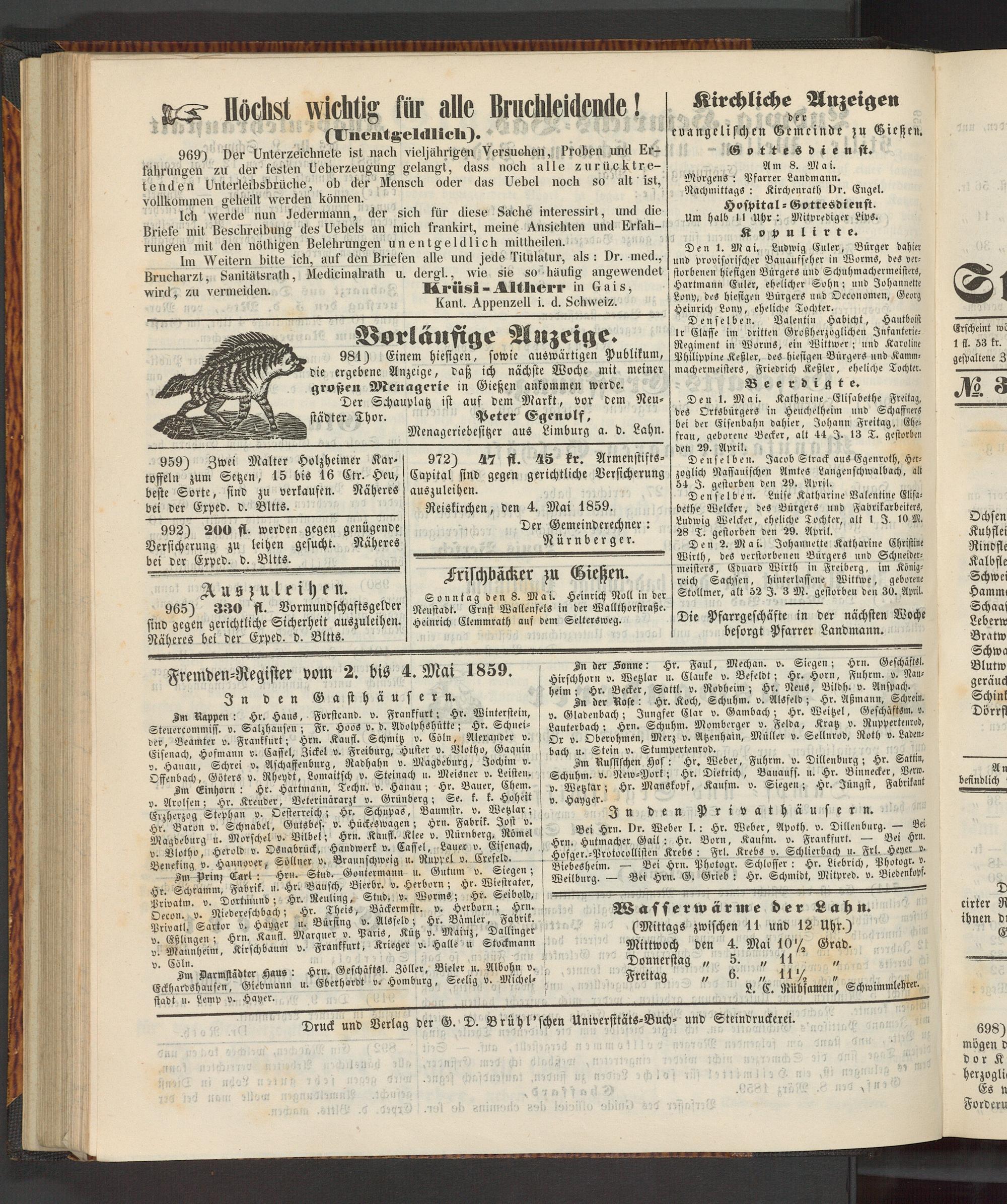 Fremden-Register vom 2. bis 4. Mai 1859.