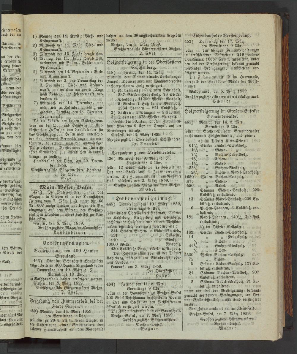 Gießen, den 5. März 1859. Großherzogliche Bürgermeisterei Gießen.