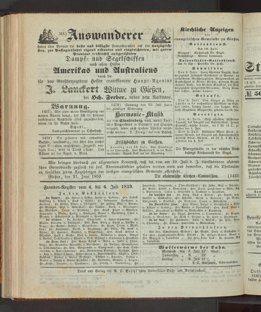 Gießen, den 21. Juni 1859. Die akademische Kirchen-Commission. (1422)