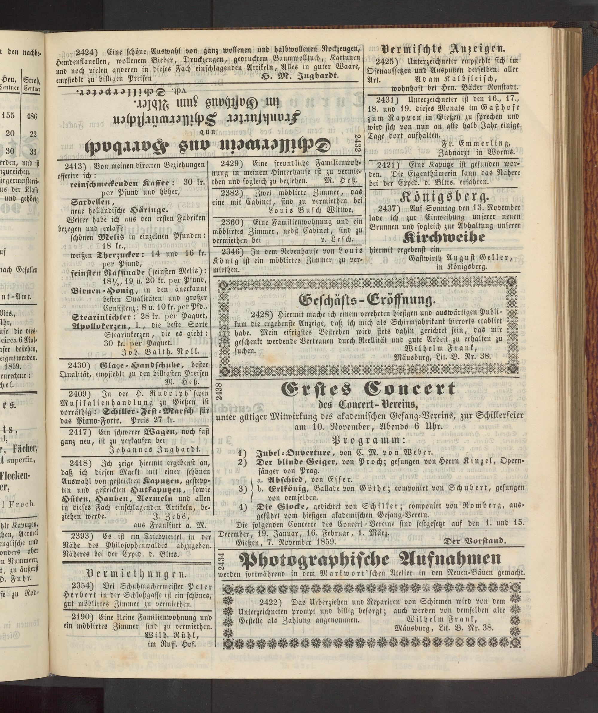 Giessen, 7. November 1859.Der Vorstand.