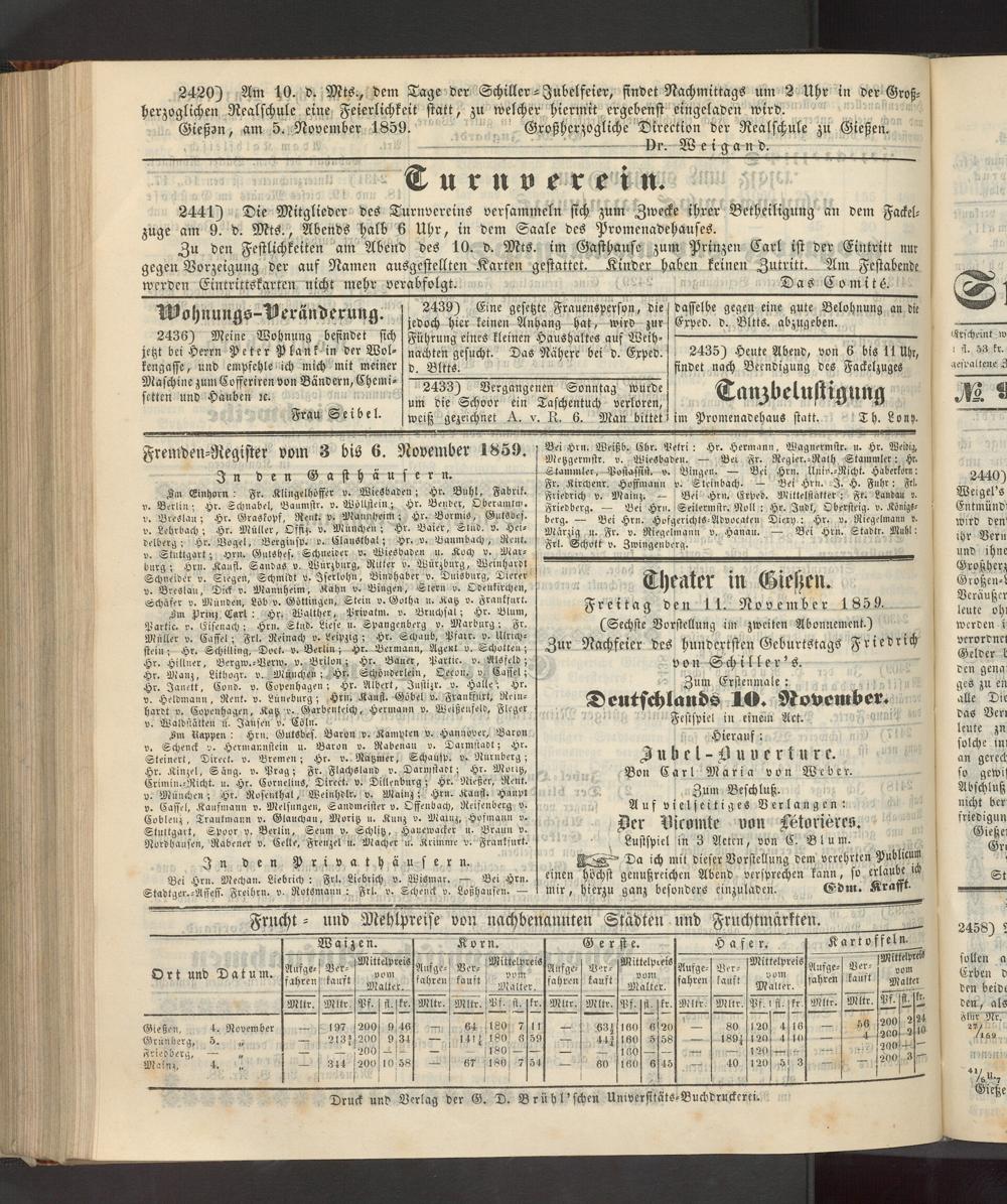 2420) Am 10. d. Mts., dem Tage der Schiller-Jubelfeier, findet Nachmittags um 2 Uhr in der Großherzoglichen Realschule eine Feierlichkeit statt, zu welcher hiermit ergebenst eingeladen wird.